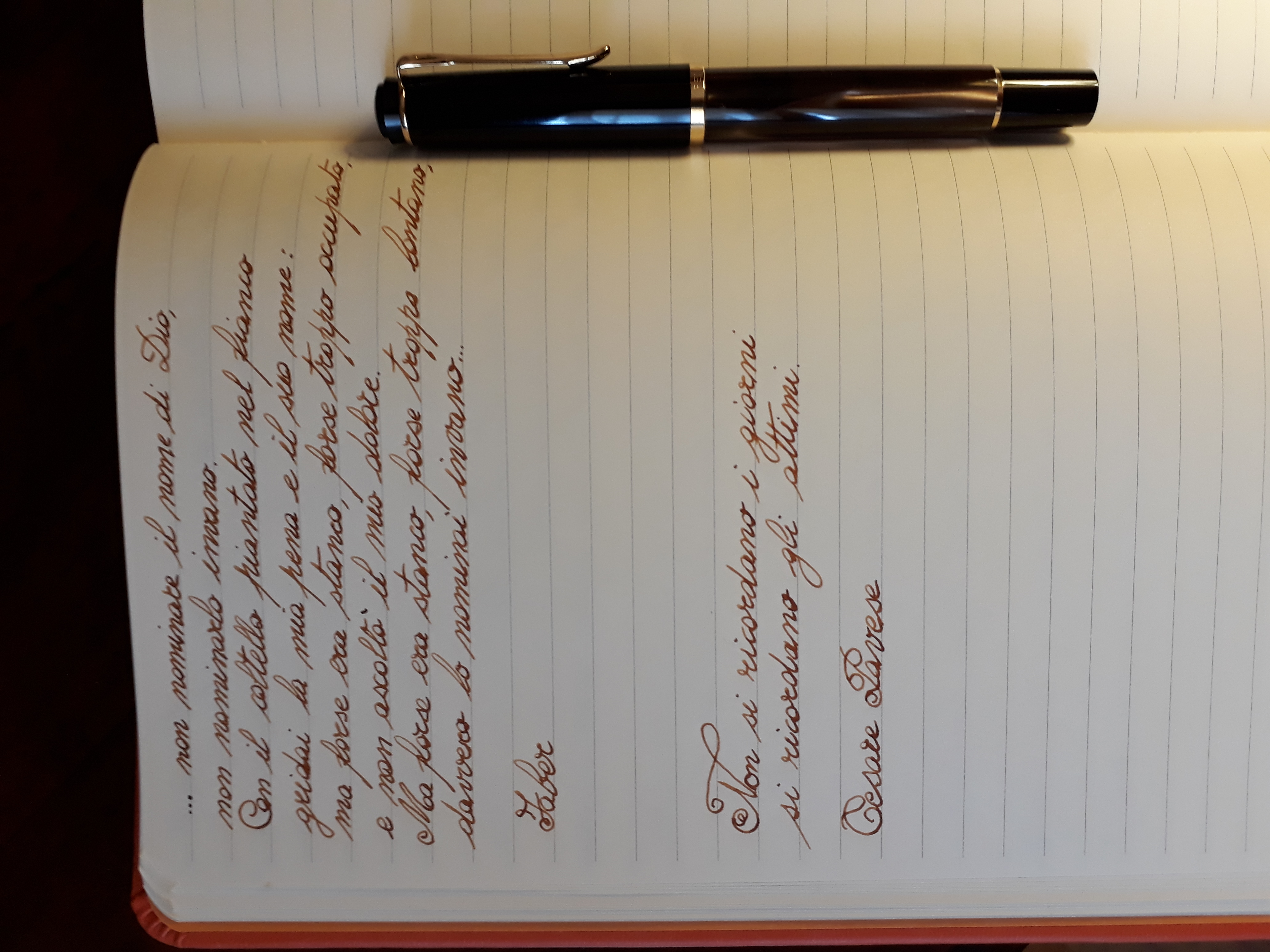La foto non è delle migliori... la carta è Clairfontaine e la penna una Pelikan 200 marrone, con pennino EF...