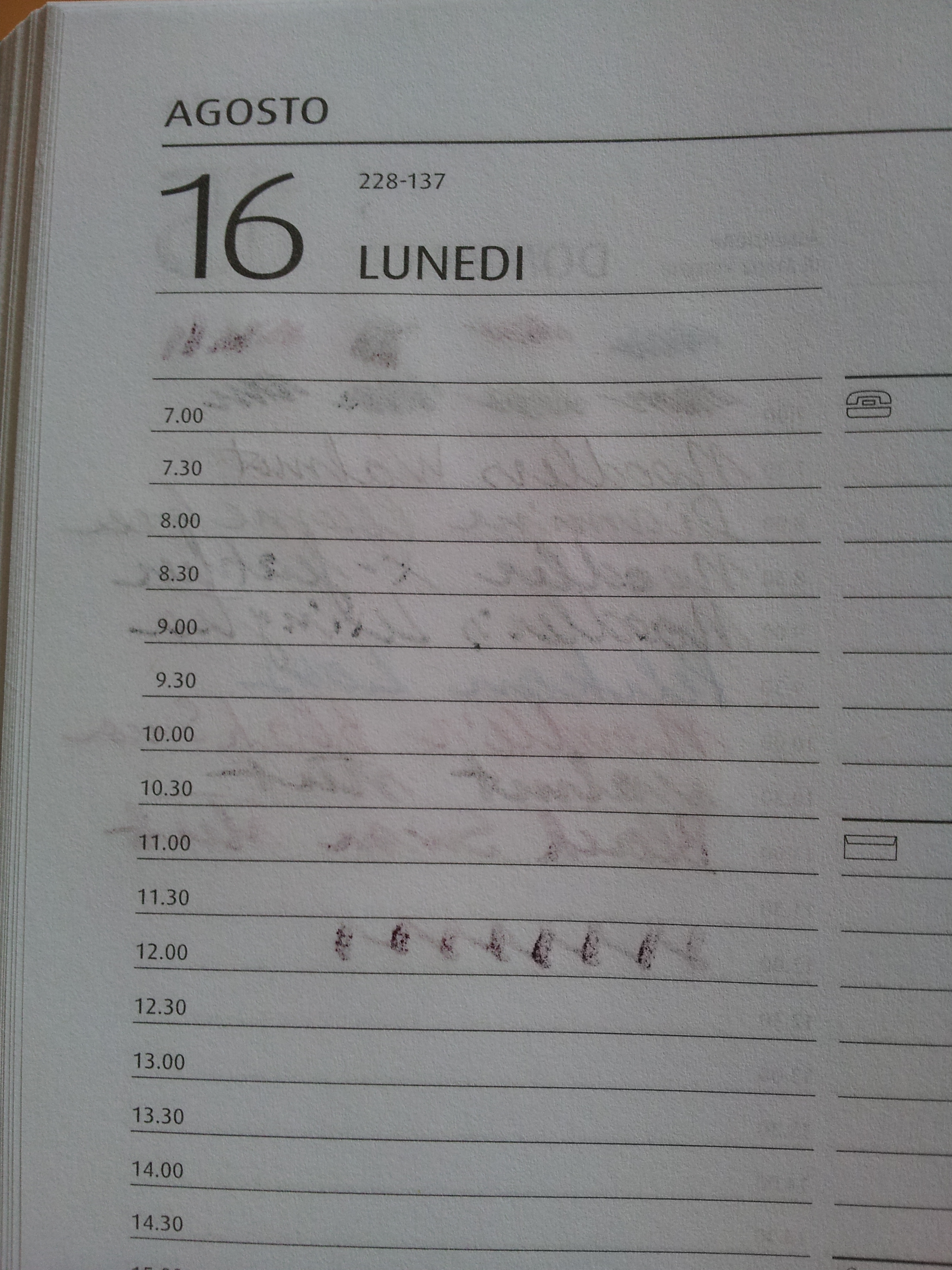Normalmente ci scrivo sopra a matita, così posso spostare o cancellare gli impegni a piacere.