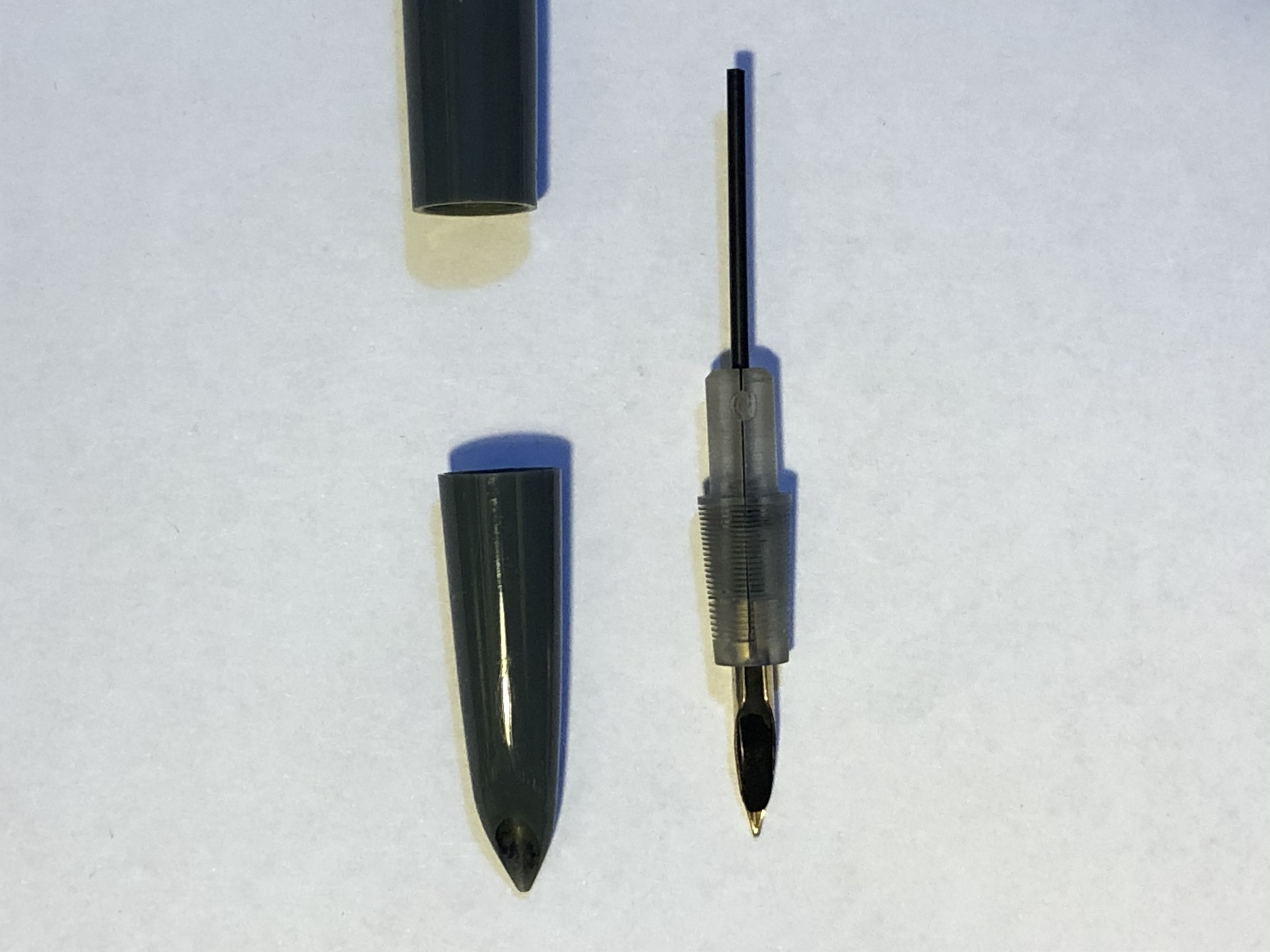 A quanto vedo si è spezzata l'astina dello stantuffo in corrispondenza del foro in cui è inserita la "coda" della molla di richiamo. Ho un caricamento vacumatic completo, ma non ho sottomano una 51 Vacumatic per verificare che sia giusto per quella penna. Se vuoi te lo regalo volentieri; Alla peggio la parte che potrebbe differire è la boccola in metallo nera che si avvita da un lato nel corpo e dall'altro ha l'attacco per il fondello: in teoria si potrebbe fare un collage, anche se per fare ciò è necessario separare l'astina dello stantuffo dalla "scarpa" nera nella quale è inserito il diaframma. Non ceredo che sia una cosa facile, ma distruggendo la "scarpa" del donatore e liberando la tua dal residuo dello stantuffo distruggendolo con molta attenzione ed una punta da trapano, con l'aiuto di un pò di Attak o simili si dovrebbe ricomporre un caricamento appropriato.
