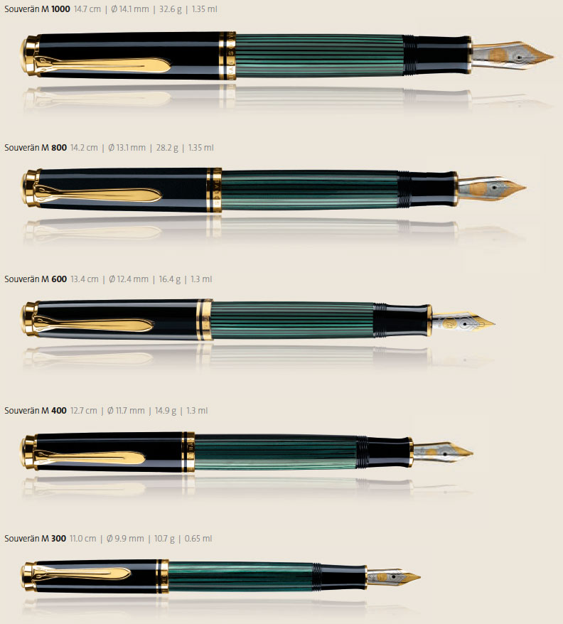Ecco le dimensioni delle penne serie Souveran