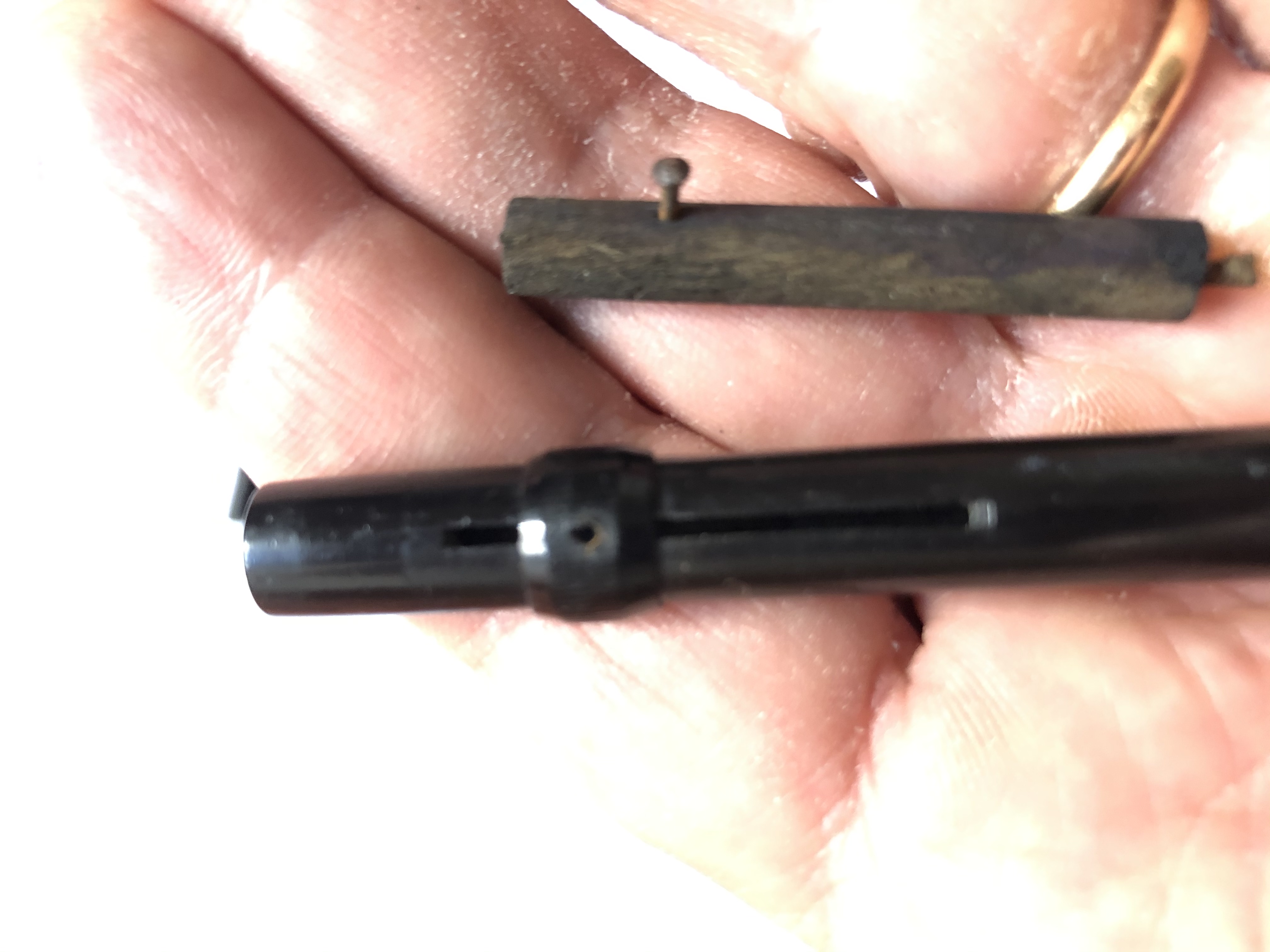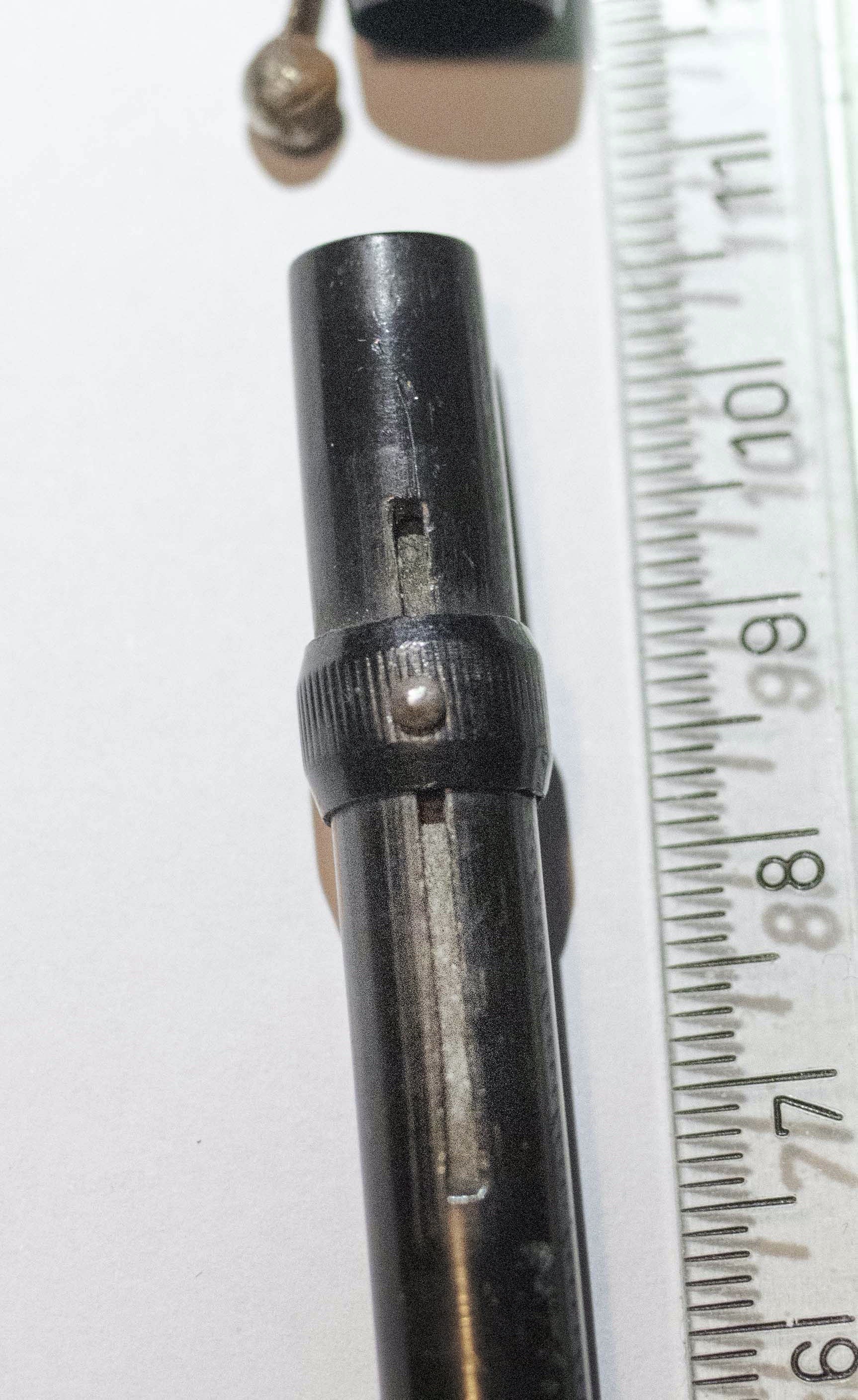 Il manicotto ha un chiodino che fissa uno stantuffo interno di legno che termina con un gommino (ora assente)