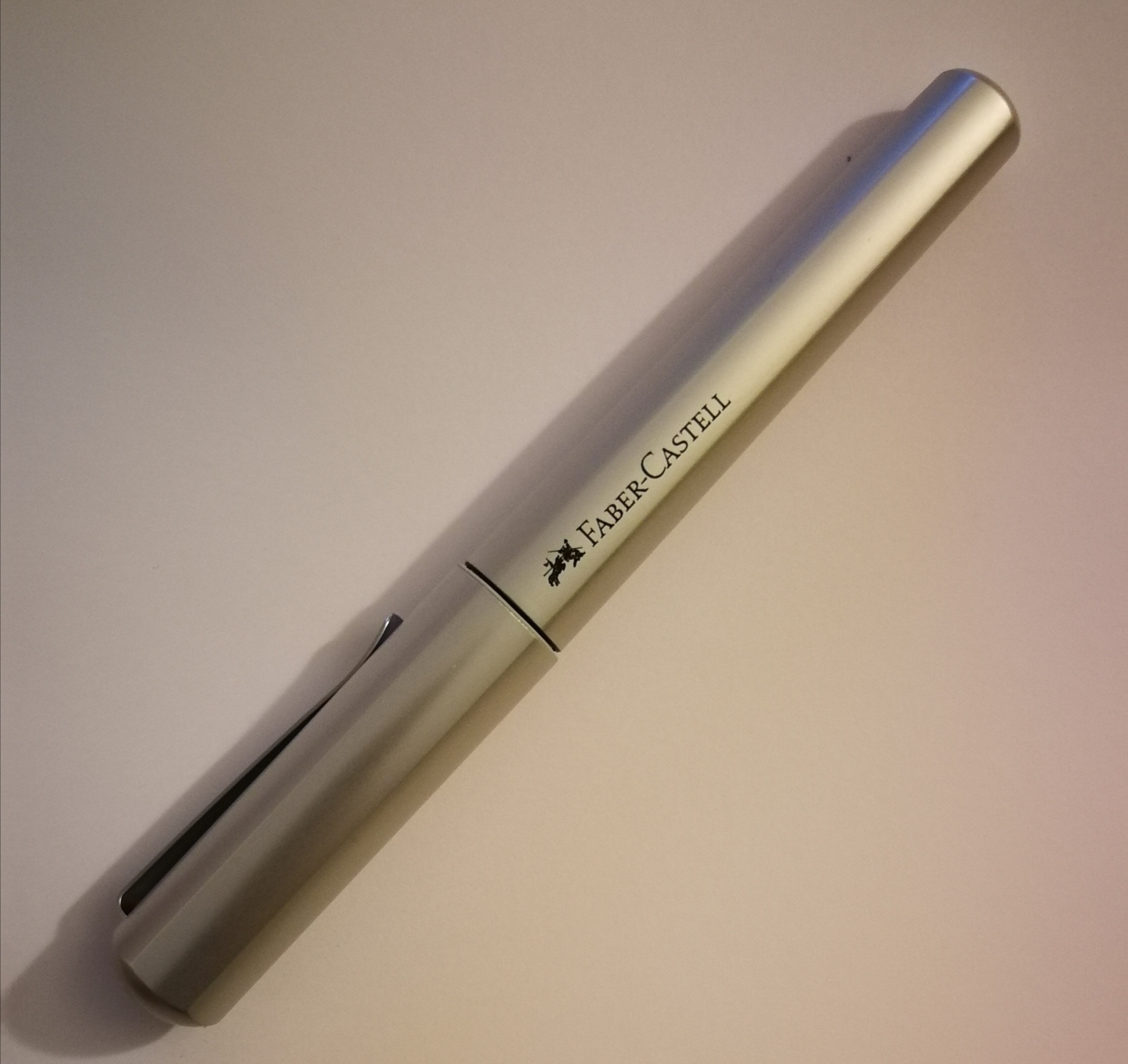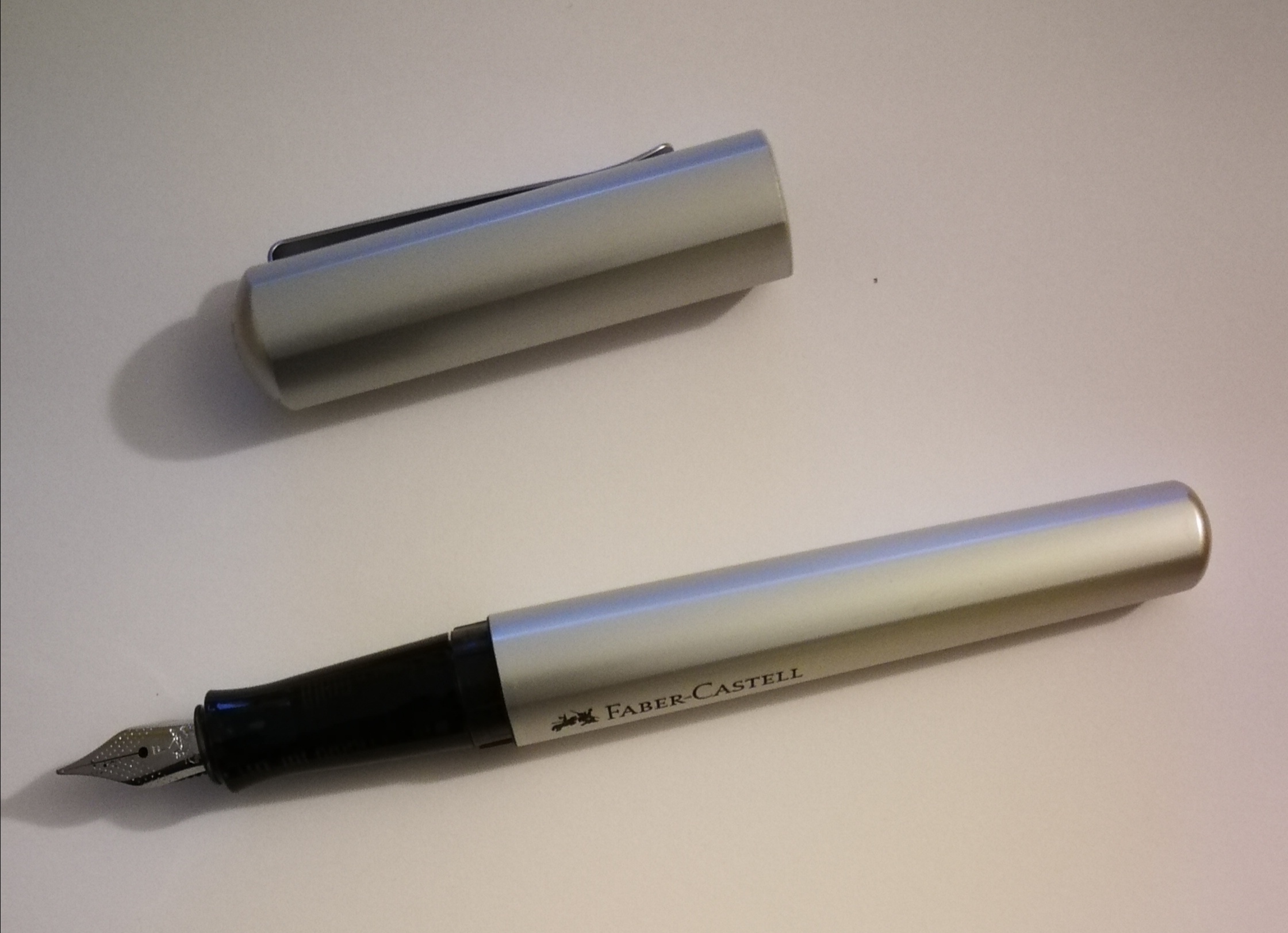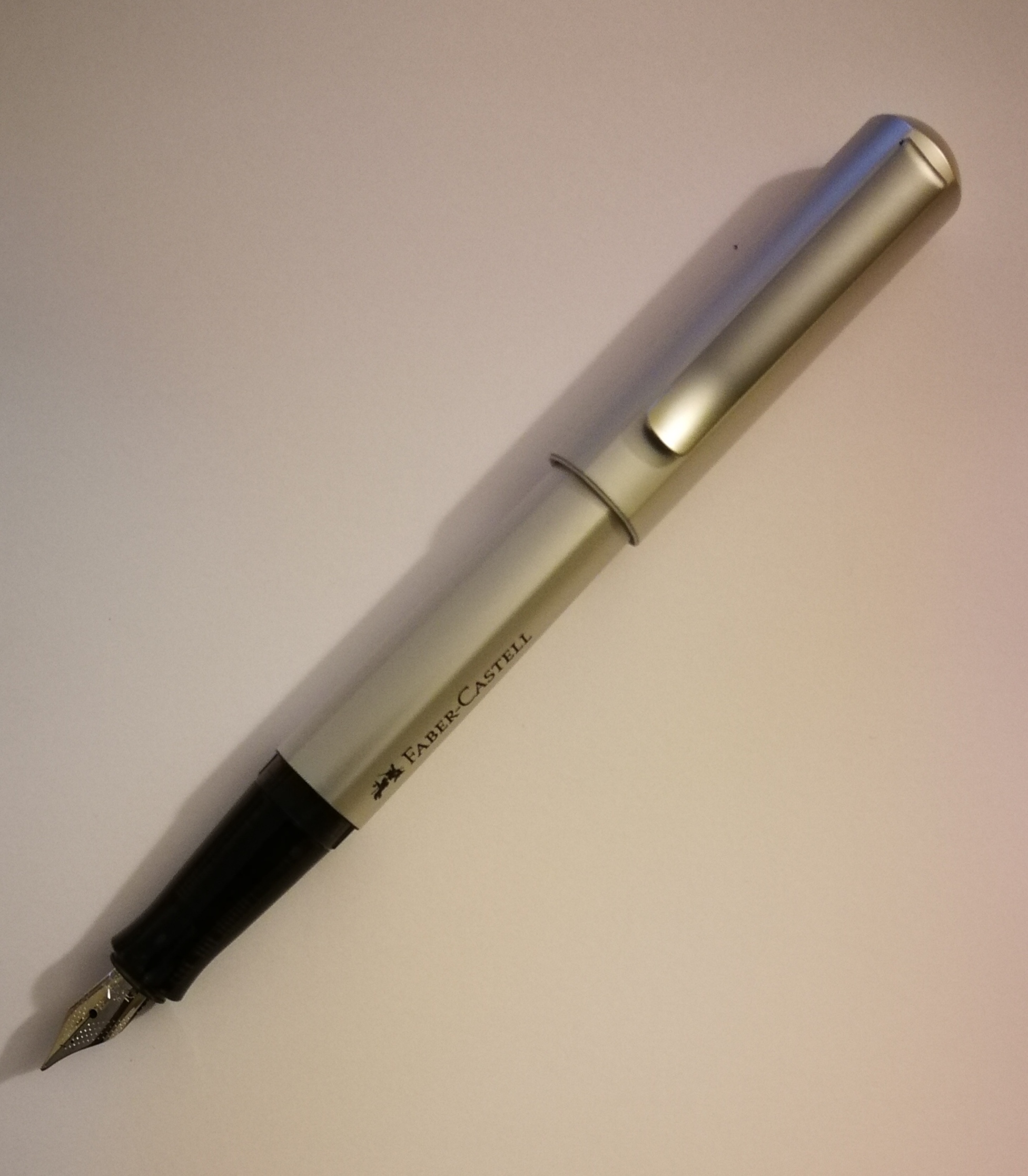 Ho acquistato questa penna su Amazon dopo averne visto la segnalazione nella sezione "consigli per gli acquisti" (con tanto di imprimantur del mio personale esperto pennofilo, l'amico e collega di lavoro Albapratalia). E' la mia prima Faber Castell ed è stata una piacevole sorpresa, nonostante il pennino F di cui non sono un estimatore. La penna è leggera, comoda e maneggevole, il pennino non gratta e scorre bene. Viene spedita in una normale scatola con due cartucce, una piena e una vuota. Il cappuccio è con chiusura a scatto. Ecco alcume misure: