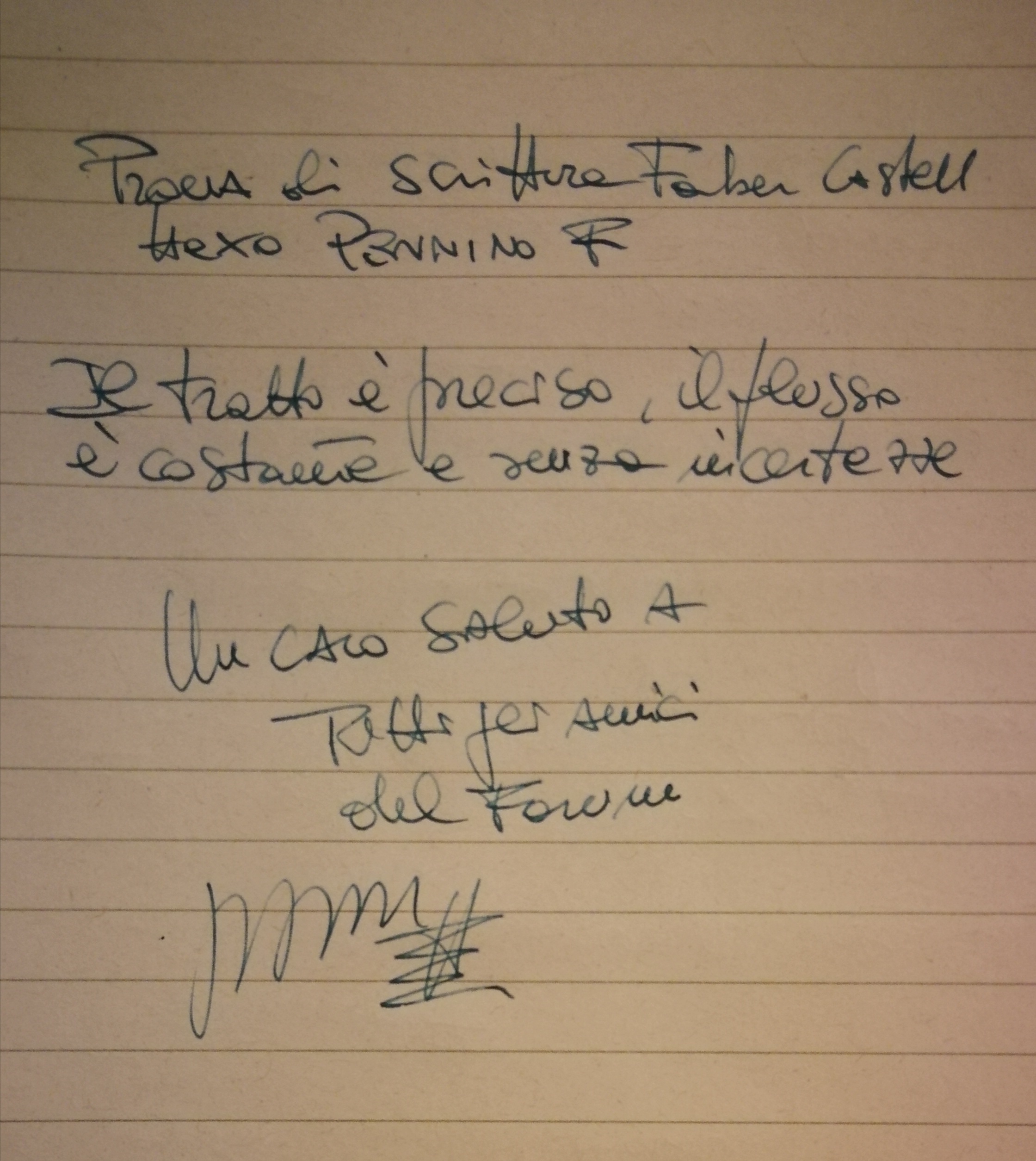 A propò, ci ho scritto su carta Rohdia, Clairefontain e Favini (Rismaluce), mi sembra che il tratto su tutte e tre sia pià stretto. Ma magari c'entra l'inchiostro? Ho usato la cartuccia in dotazione.