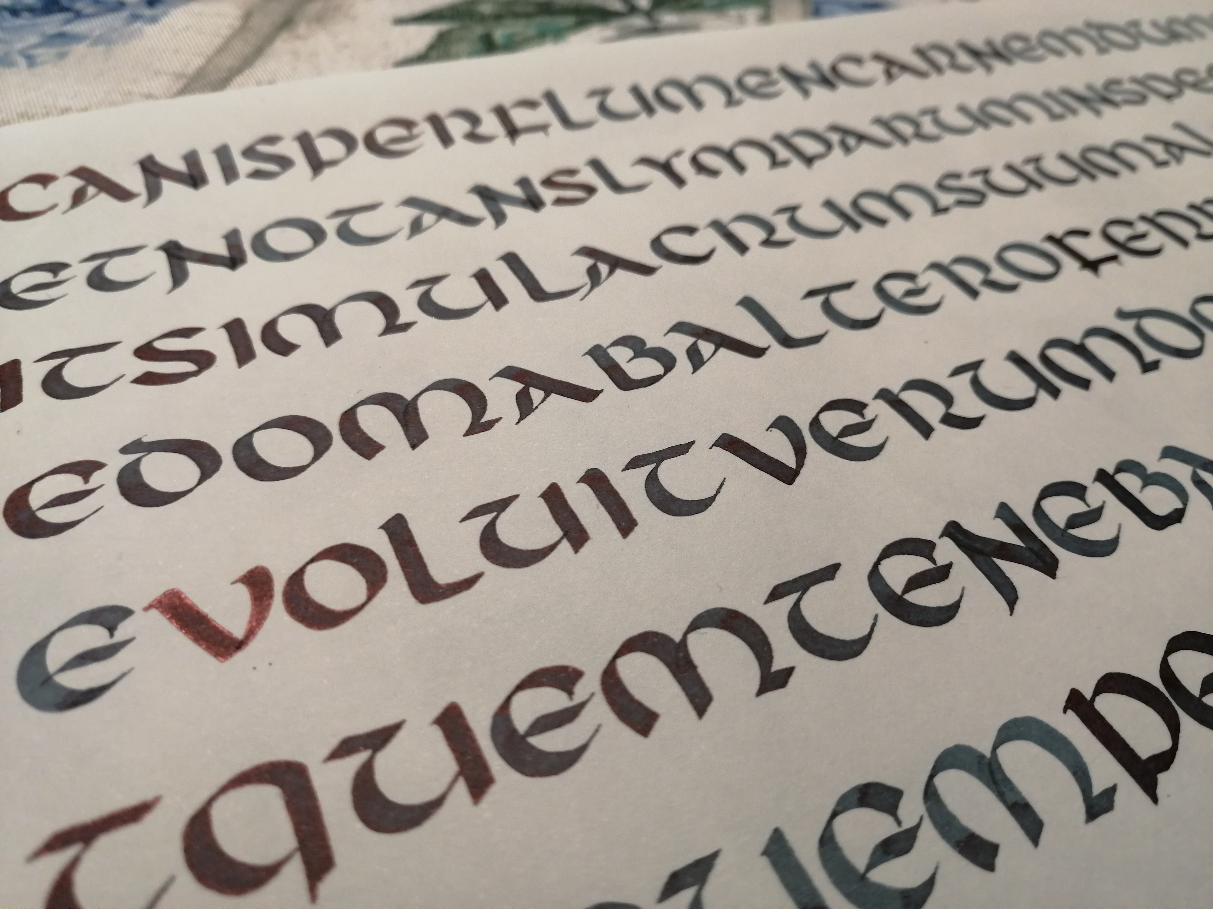 Sfidando l'incertezza di coprifuoco ecc. ho iniziato a seguire delle lezioni di onciale.