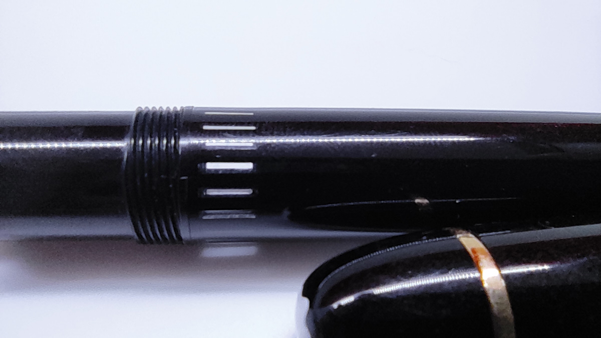 Ora mi sorge un dubbio e chiedo a voi esperti a che anno di produzione fa riferimento. Ho esaminato la tabella presente sul forum ma non riesco a trovare la corrispondenza in quanto il meccanismo di carica in plastica non coincide con il pennino 14K. Può trattarsi di una versione a cavallo delle 2 produzioni, quindi 1985?