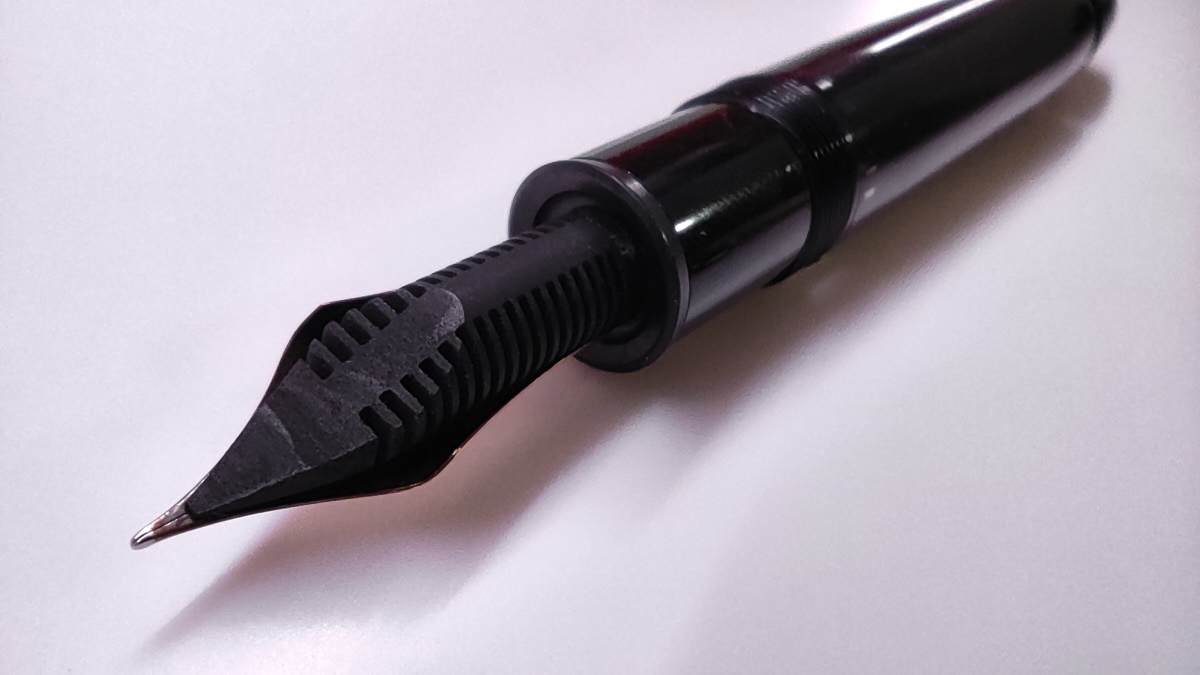 Il pennino è bicolore 14k e l'alimentatore in ebanite "tagliata"