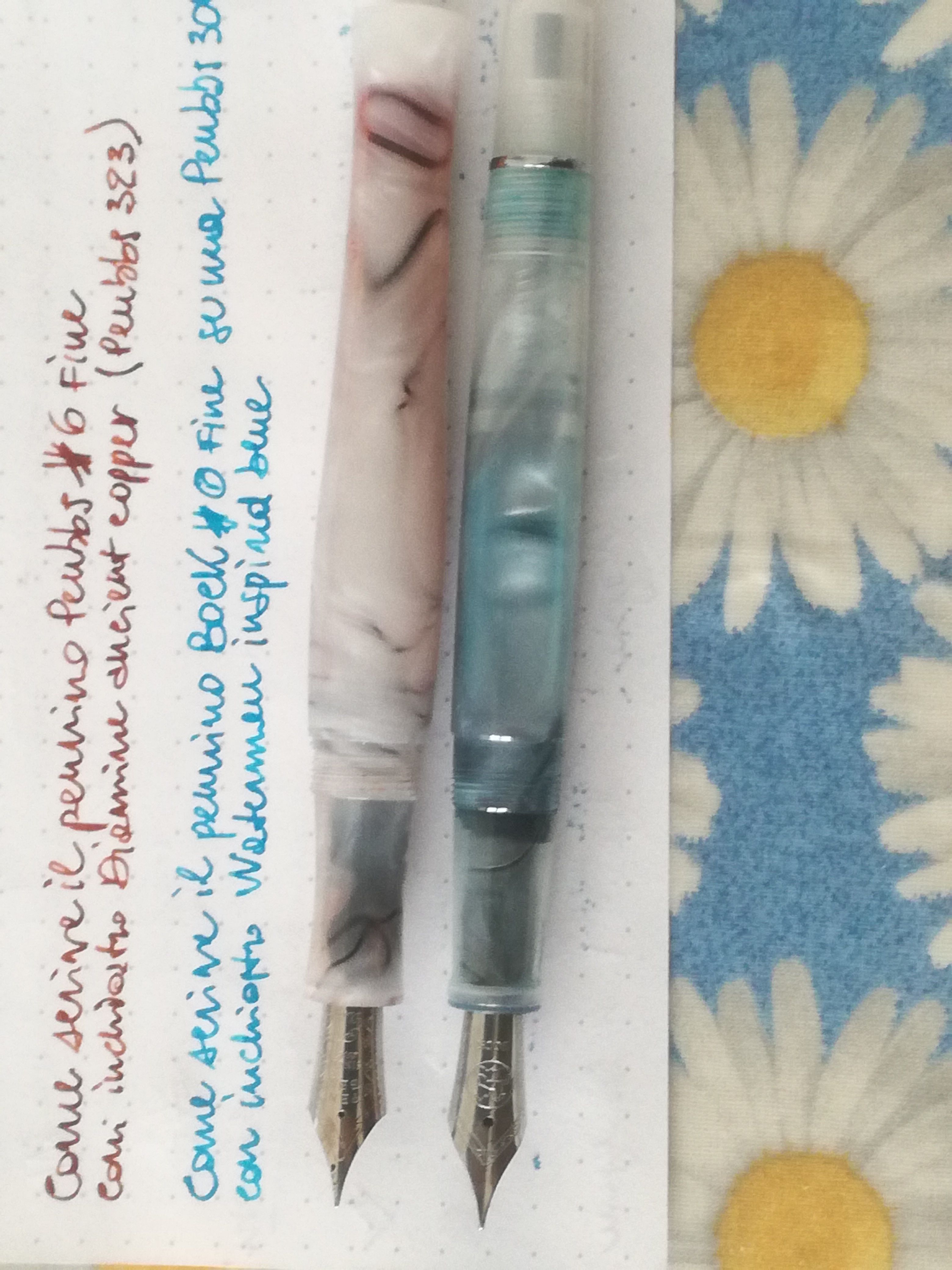 Sopra, una Penbbs323 con il solito pennino #6 F, prova con inchiostro Diamine Ancient Copper.