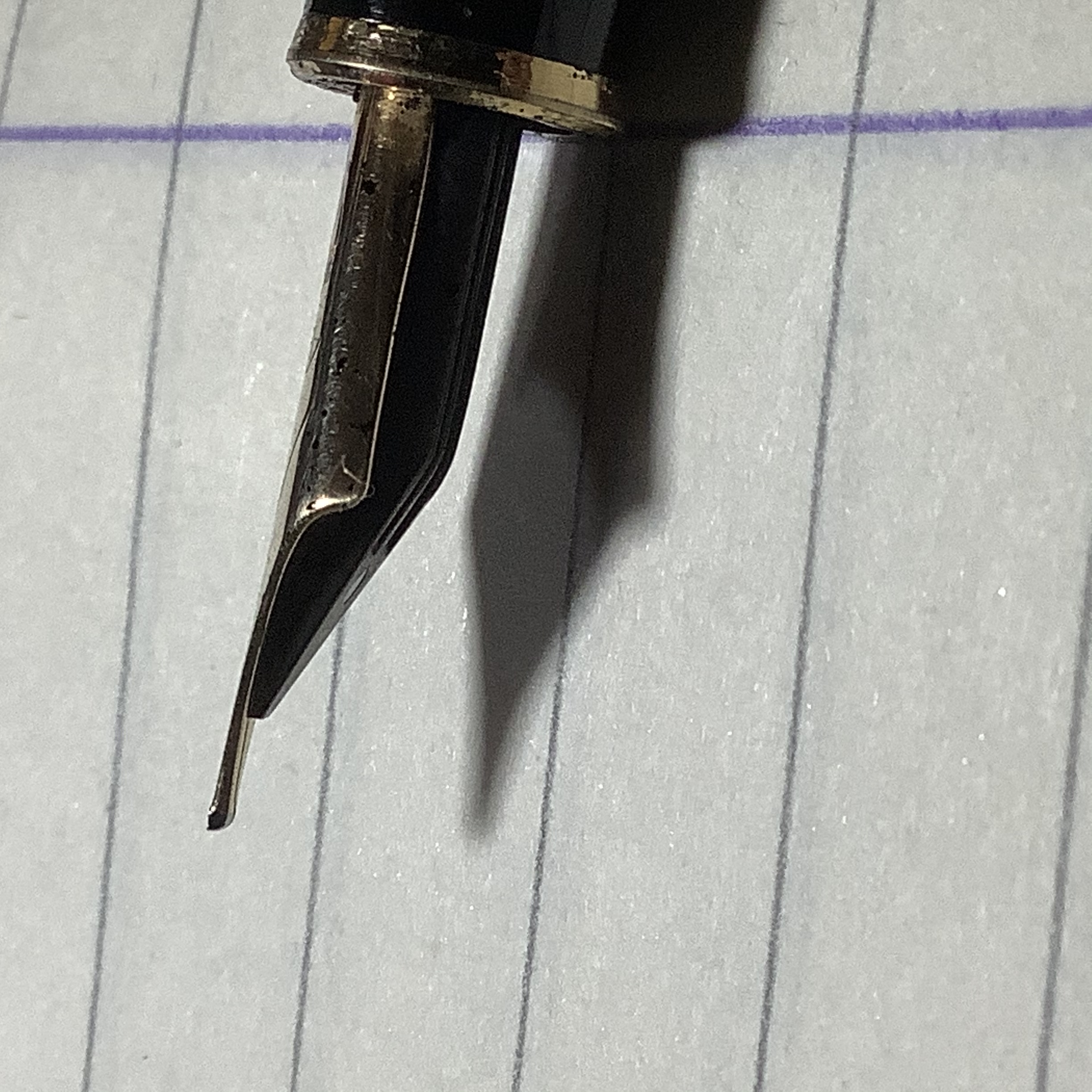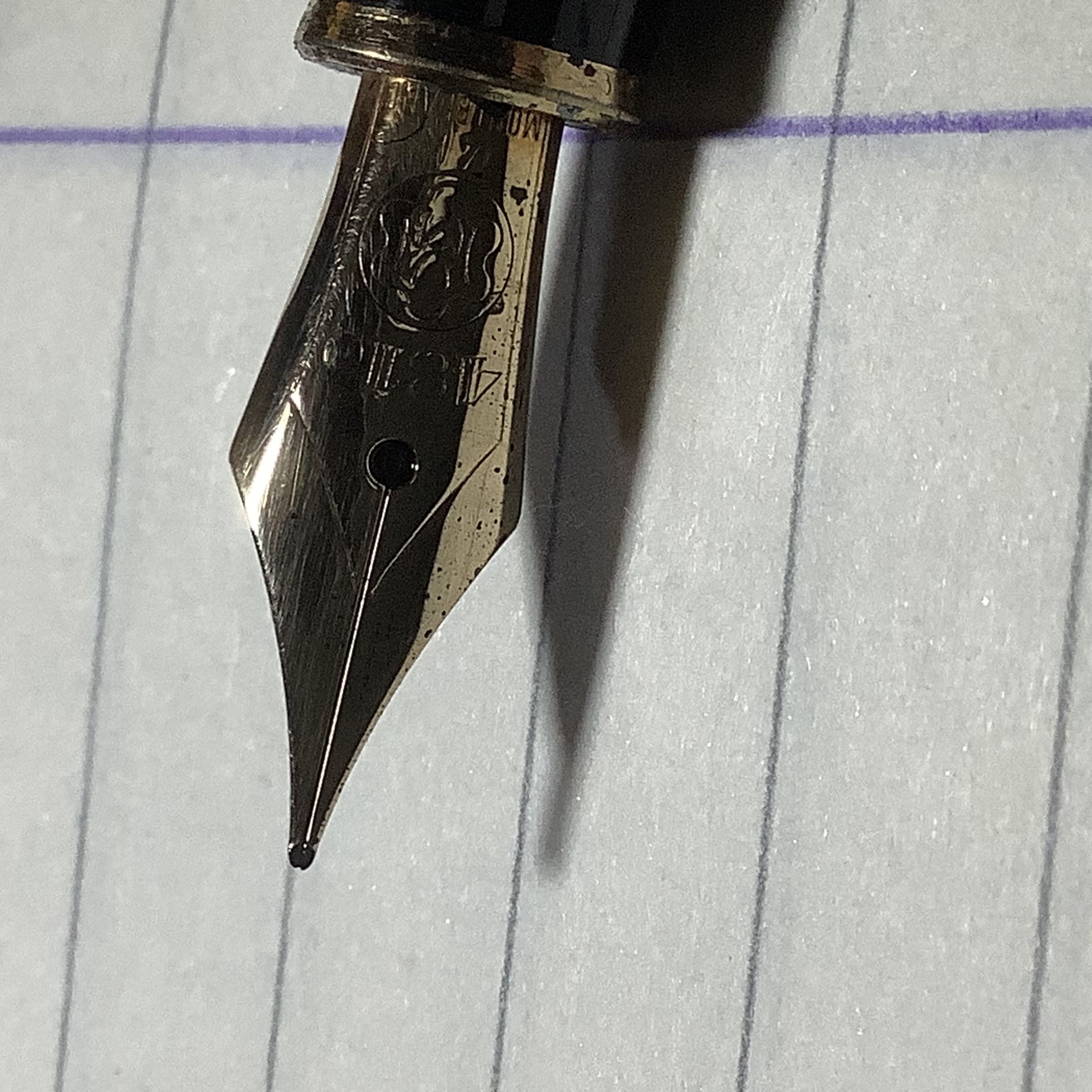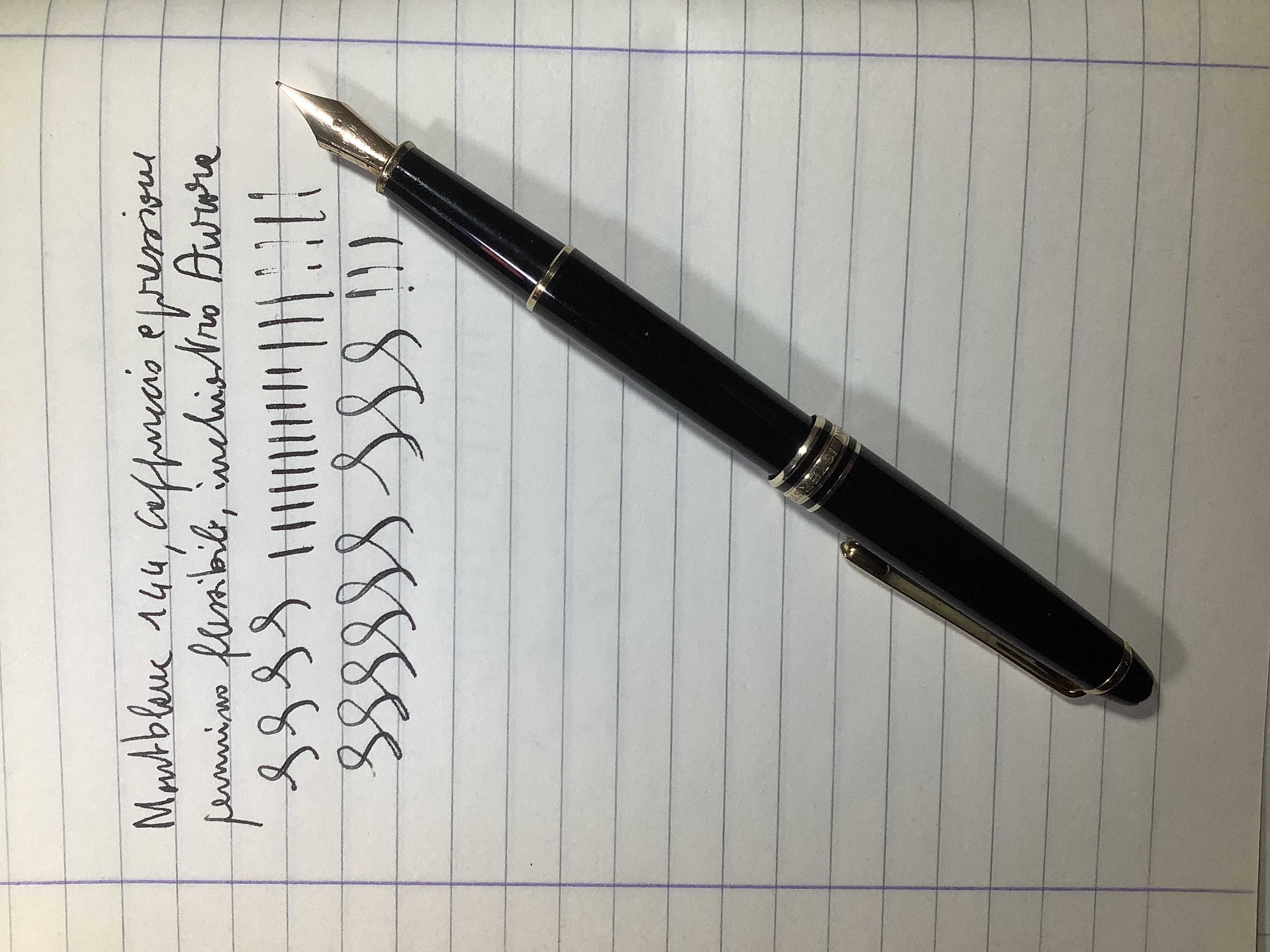 La mia MB 144 ha un pennino molto morbido ed elastico (oserei dire dunque flessibile) e scrive bene finché non si tracciano tratti verticali: in tal caso Il flusso d’inchiostro non ce la fa ad alimentare il pennino con il risultato che vedete a destra nella prova di scrittura. Suggerimenti? Bagni e pulizie ordinarie già provati. Smontare alimentatore e pennino? per fare che? E sarebbe necessaria l’apposita chiave oppure è a frizione?