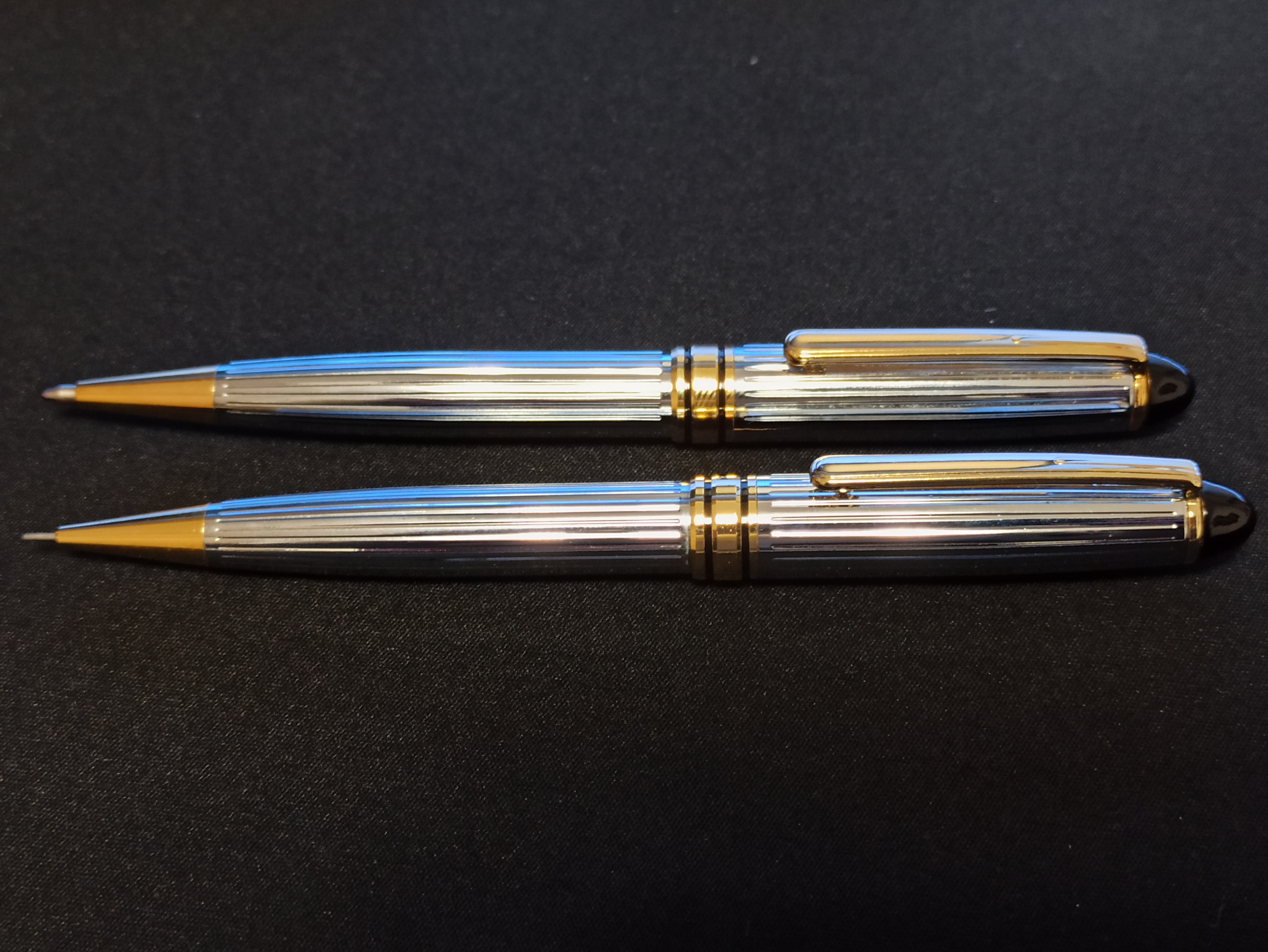 In pratica ho una penna a sfera e un portamine in argento/oro che ricalcano un pó le forme delle Montblanc.