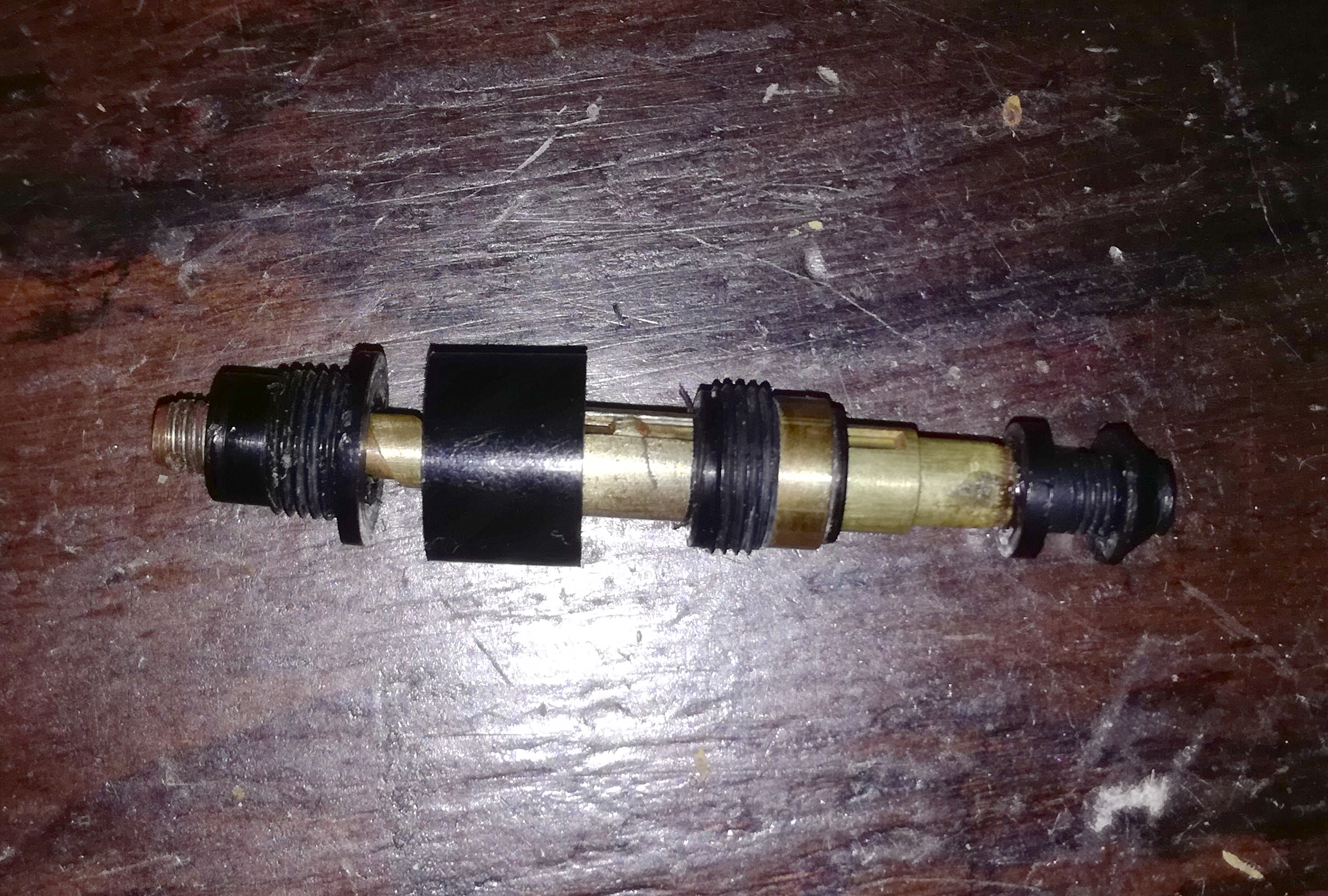 Per smontare quel che resta del pistone, bisogna levare la spinetta che fissa la manopolina di rotazione dell'albero telescopico del pistone , una volta estratta si svita la manopolina e si estrae l'alberino, che nel mio caso era ossidato e bloccato.(Foto 2 e 3)