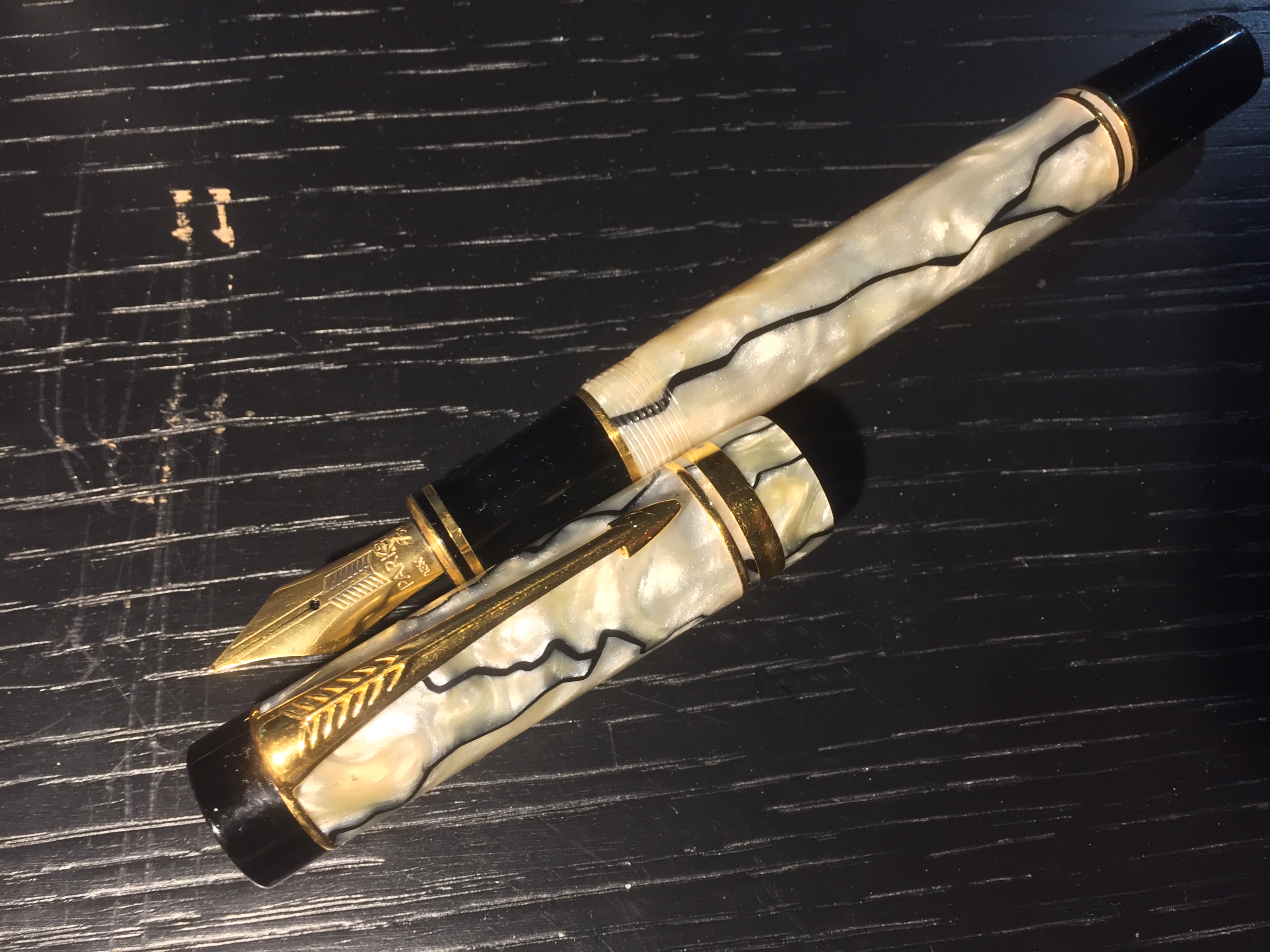 Una Parker Duofold Centennial, madreperla, con pennino Fine...