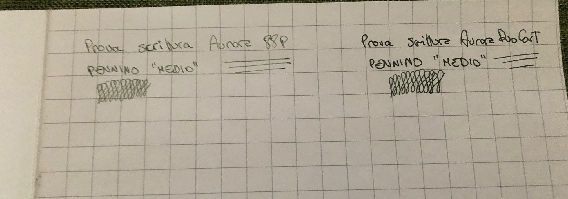 Caricata con inchiostro, scrollata energicamente e scritto due pagine fittissime ma purtroppo a me il tratto sembra sempre mooooolto slavato. Provato anche a infiare gentilmente una lametta da barba tra le punte del pennino ma nulla. Solo premendo abbastanza forte la traccia appare decisa. Vi allego foto... purtroppo quel tratto proprio non mi piace. Ma secondo voi, varrebbe la pena farle cambiare il pennino? grazie!
