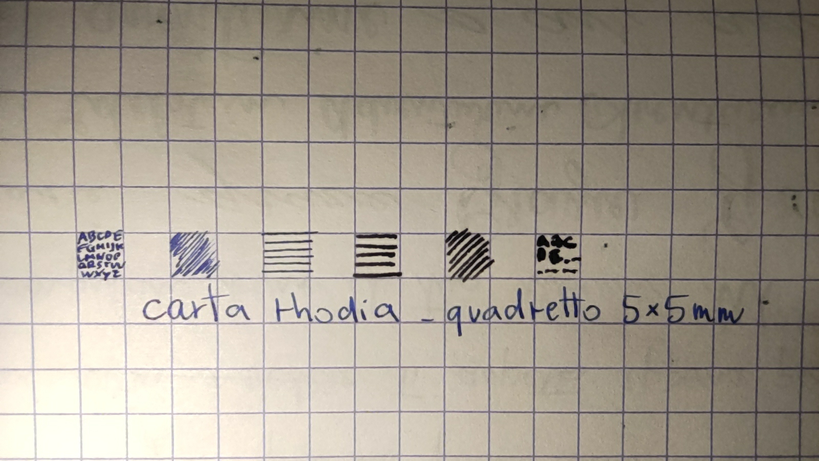 Ti riporto un esempio effettuato al volo su cartaccia economia di un blocknotes pigna a quadretti (che assorbe molto e ingrossa quindi anche il tratto):