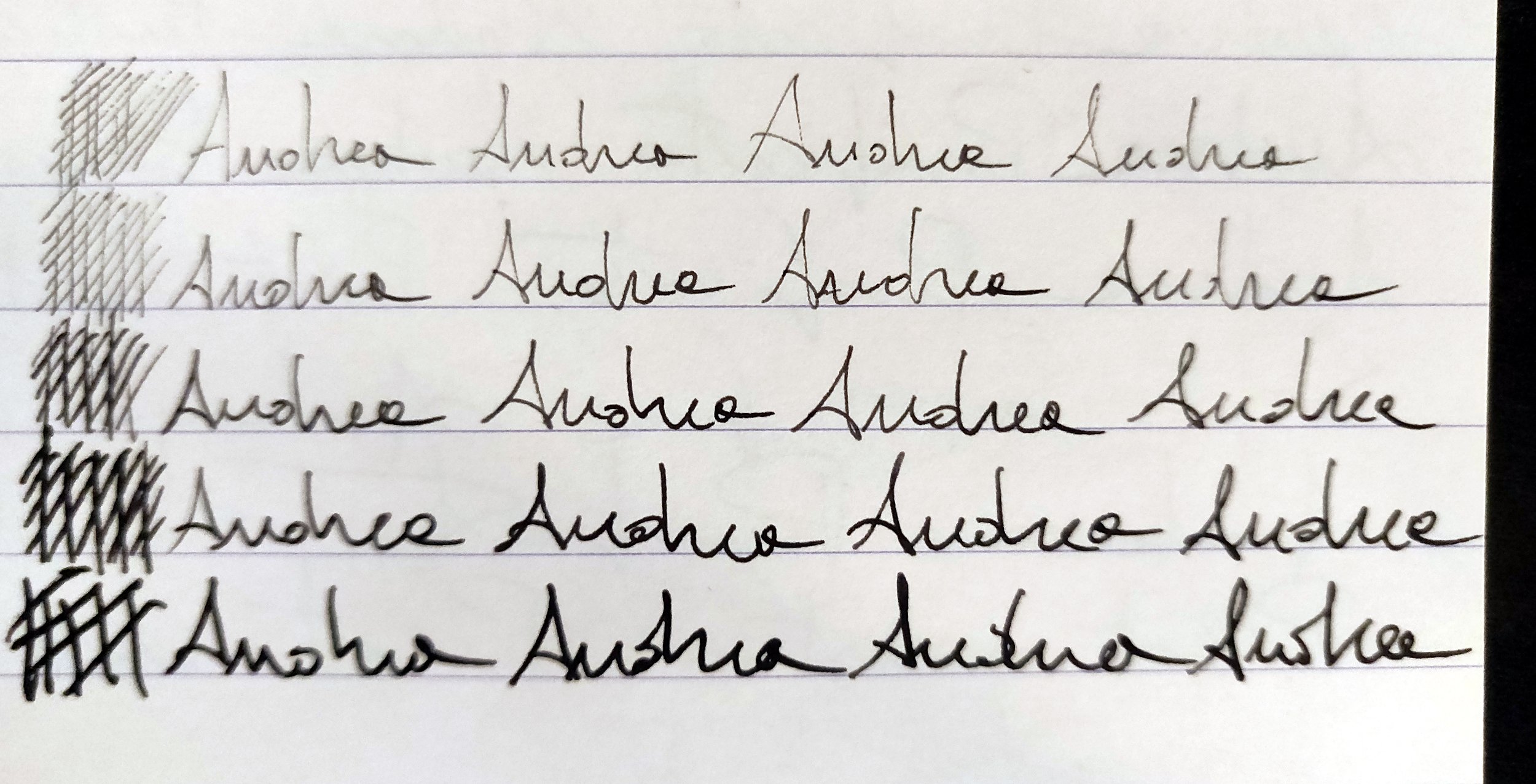 edit: prova su Rhodia fatta al volo del tratto dal leggero al pesante