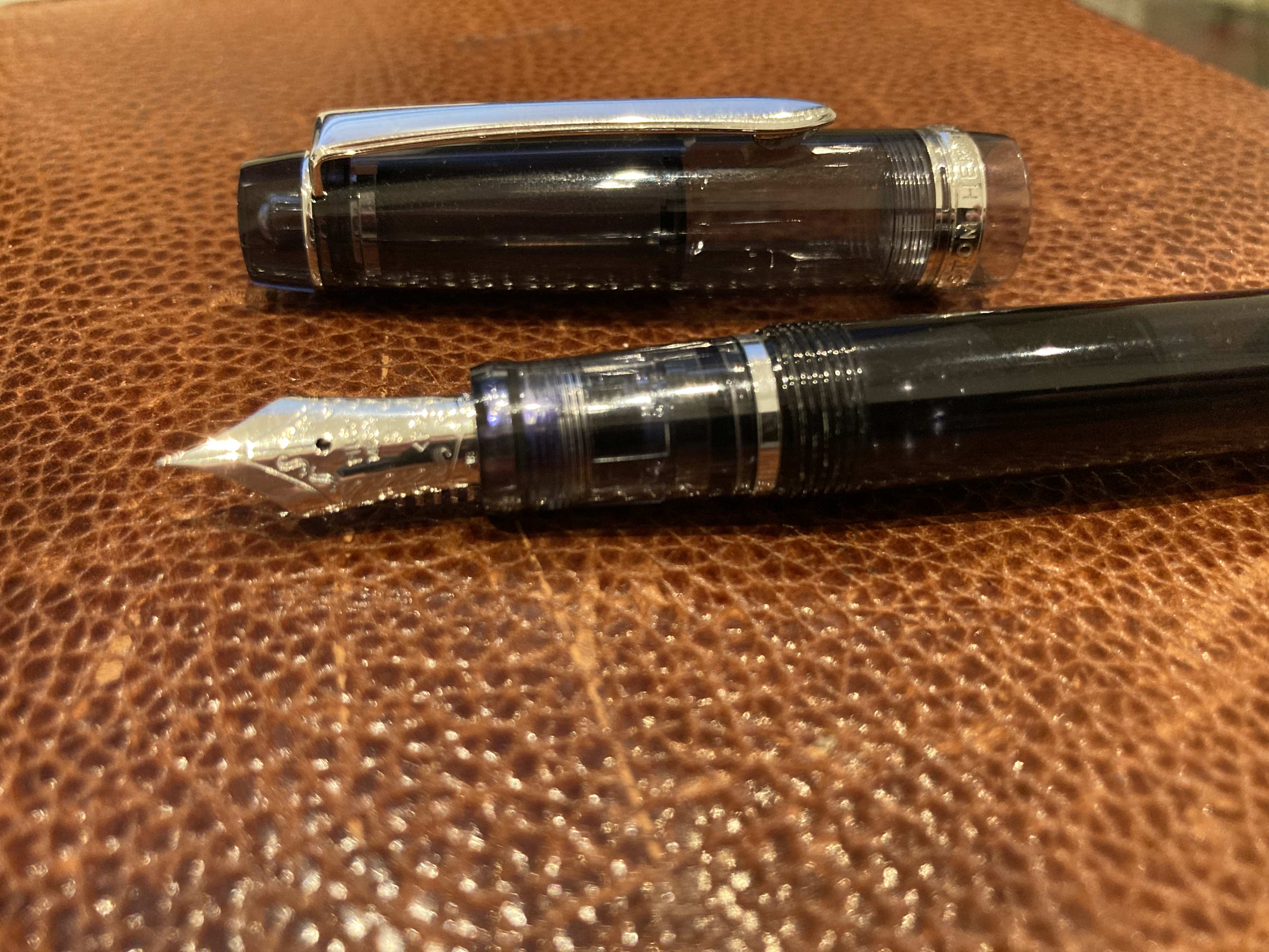 Il pennino è un F ed è veramente fine ma con un flusso piacevolmente generoso, la scorrevolezza è buona, sebbene, a mio avviso, inferiore ai pennini SF della stessa linea o al F della pilot Capless. Peccato su non sia disponibile la più ampia varietà di pennini che si ha con la Custom 74 o la Custom Heritage 91.