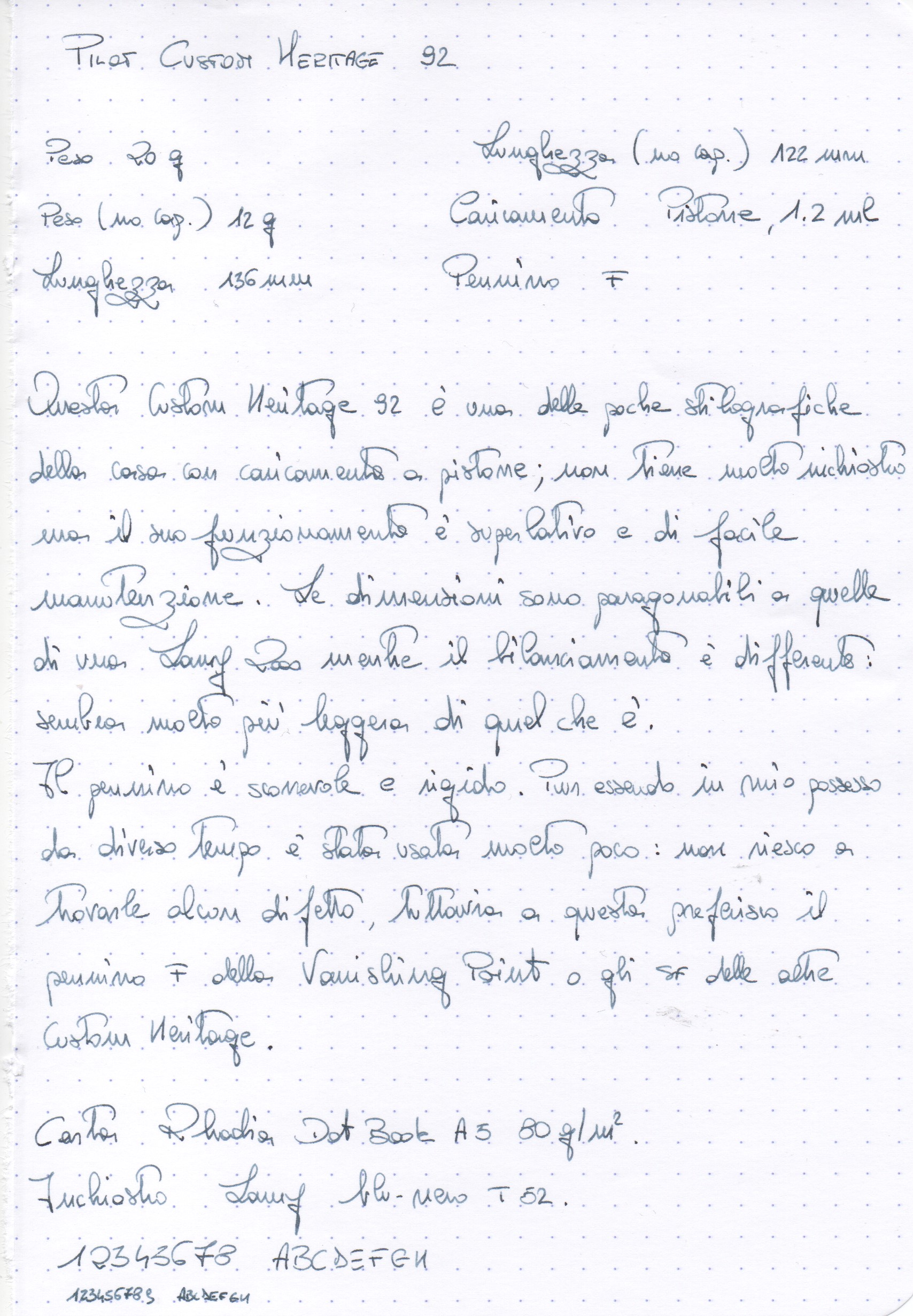 Ciao Matteo, ho anche io la Heritage 92 fine, e trovo che se dovessi scegliere una sola penna probabilmente mi potrei accontentare di lei. Ora l'ho prestata a un amico utente del forum che magari passerà di qui per confermarne la bontà.