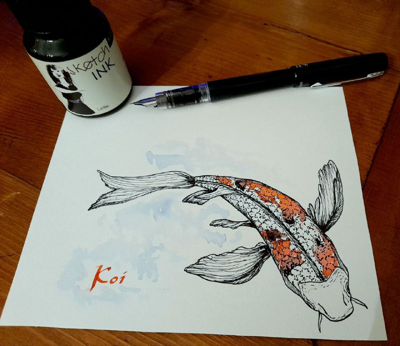 Molto bello, il koi, il colore e la posizione del soggetto sul foglio. Bravo!