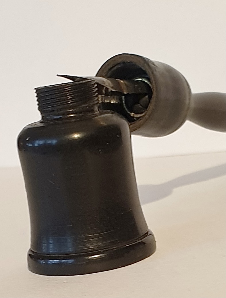 Penner in ebanite fine '800 circa, che ricorda, (anche se con pennino fisso nel tappo, senza porta mine e sandracchiera), l'elegantissimo, settecentesco Baradel*.