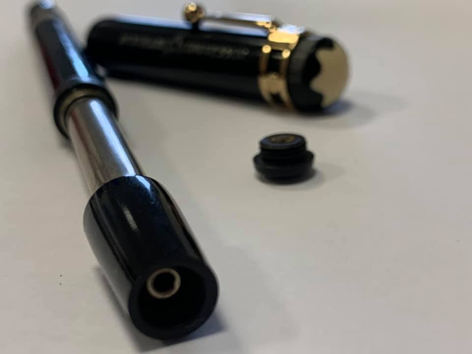 successivamente tirare il pistone, chiudere col dito il buco sul fondello, spingere con forza il pistone giù (questo schiaccia il sacco) togliere il dito, il sacco torna in posizione a aspira l'inchiostro... insomma molto comodo...