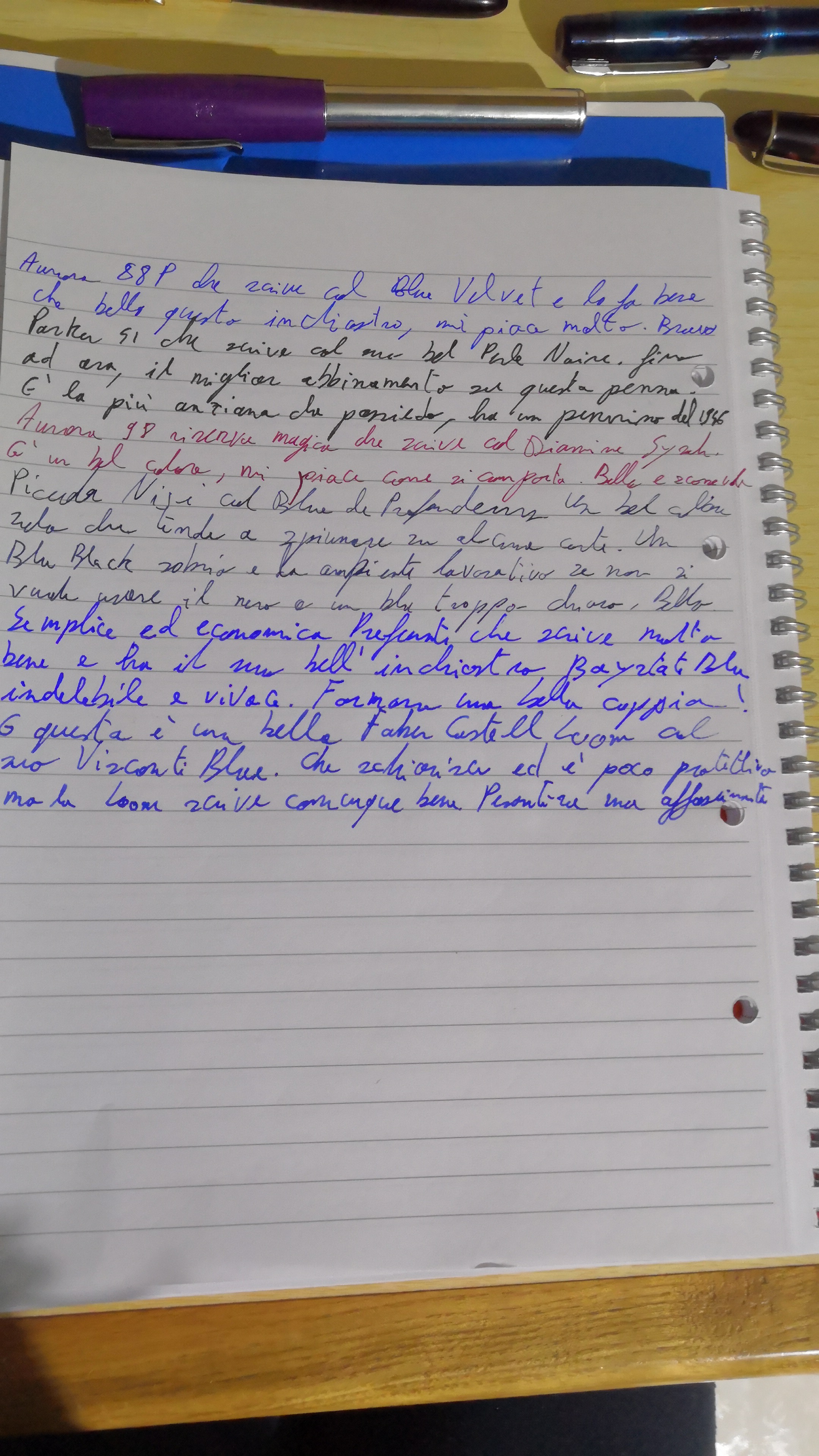 Spiller84 ha scritto: sabato 13 febbraio 2021, 16:29 Tanto per, un paio di righe scritte con Prefounte e Baystate Blue in comparativa con altre penne, su quaderno Colourbook