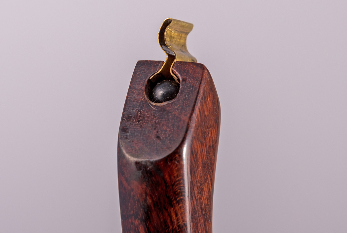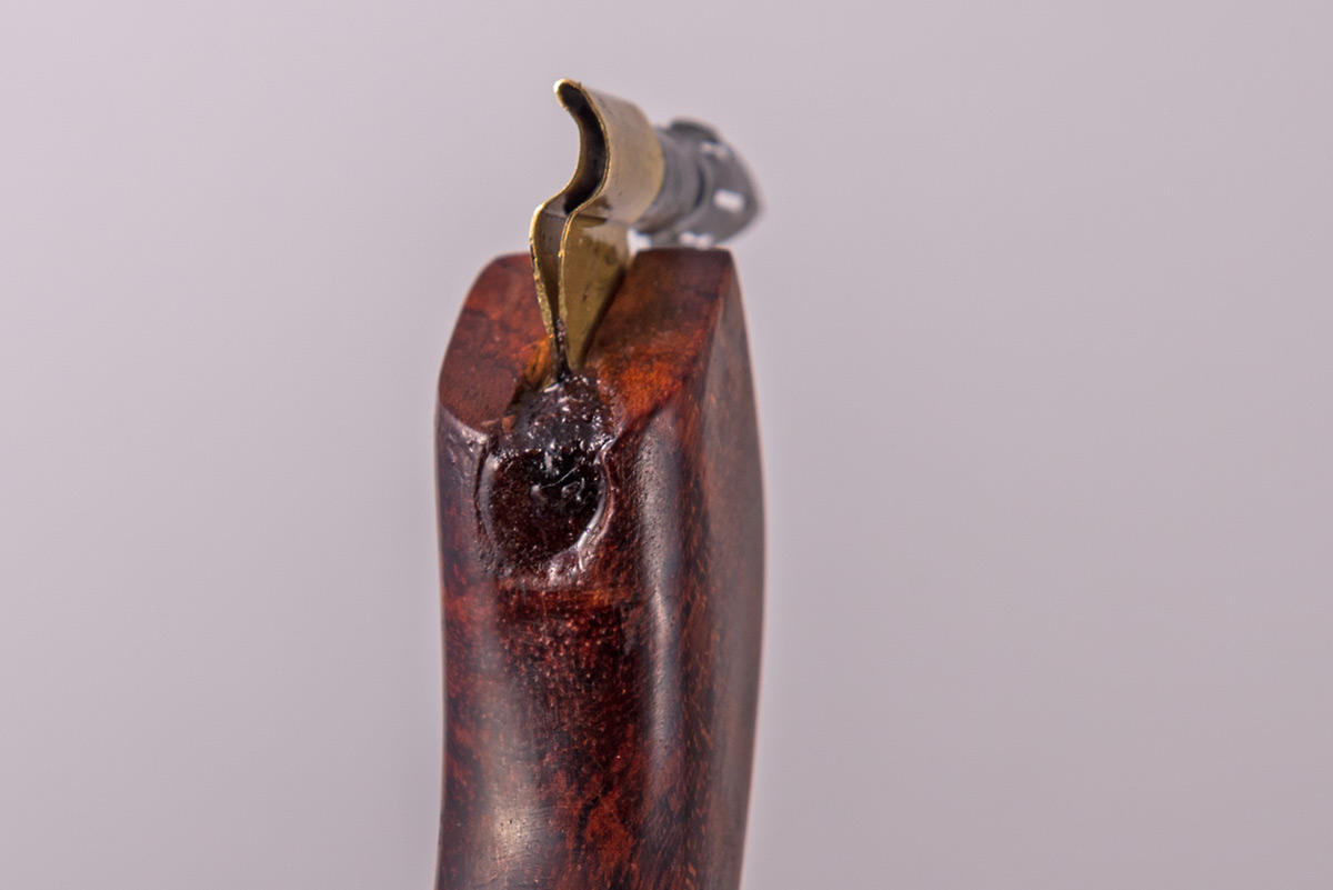 Iniziamo dalla brutta notizia, mentre smontavo la parte in ottone si è scheggiato il legno, purtroppo nella parte terminale del foro c’era pochissimo spessore. Ho riparato il tutto mischiando un po’ di segatura con della resina bi-componente; questo significa che la parte in ottone, se eventualmente dovesse rompersi, non può essere sostituita.