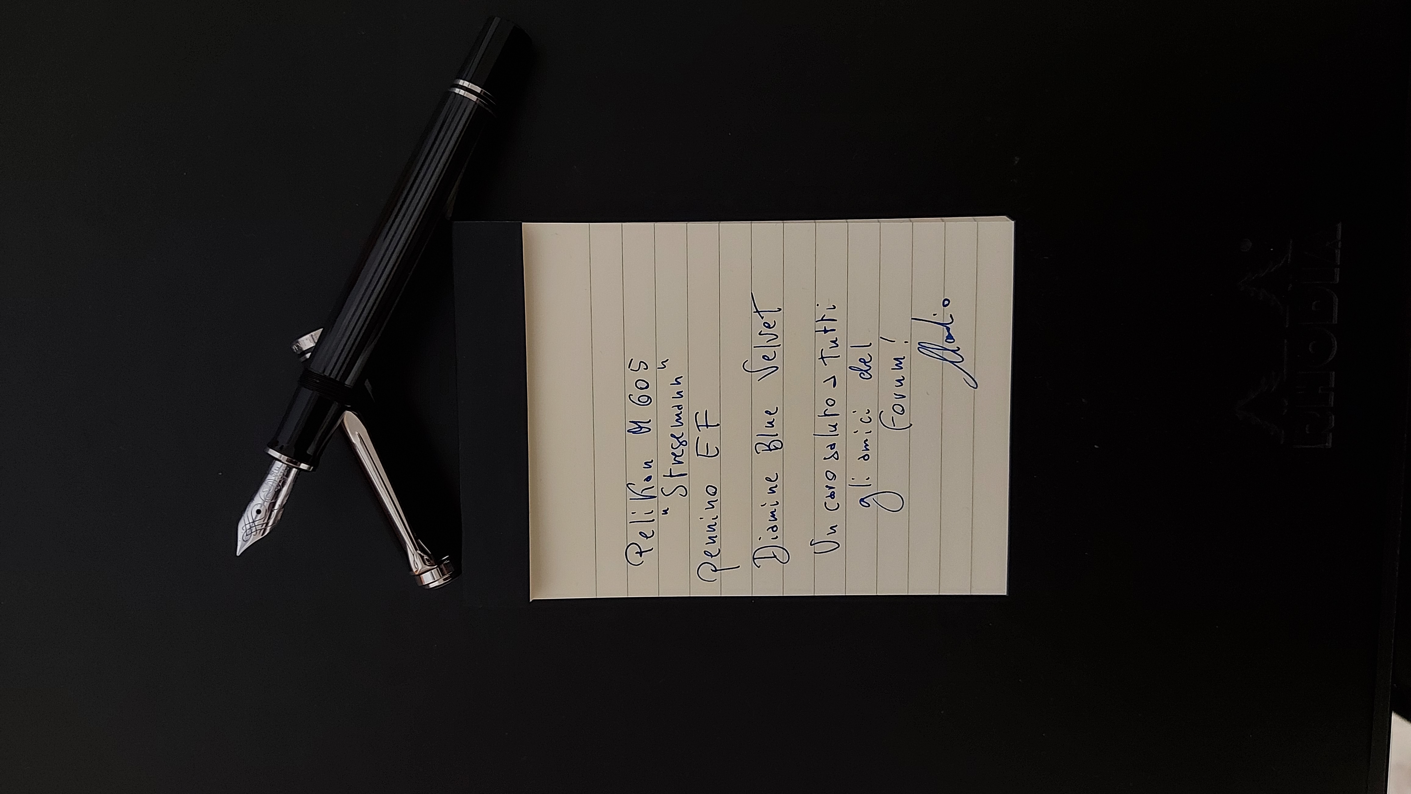 La M605 è un po' più grande e a mio avviso più maneggevole. Il pennino è un EF, in effetti è piuttosto sottile il tratto che rilascia, ma le prestazioni sono le solite di Pelikan: mai una indecisione, partenze immediate anche dopo giorni di sosta.