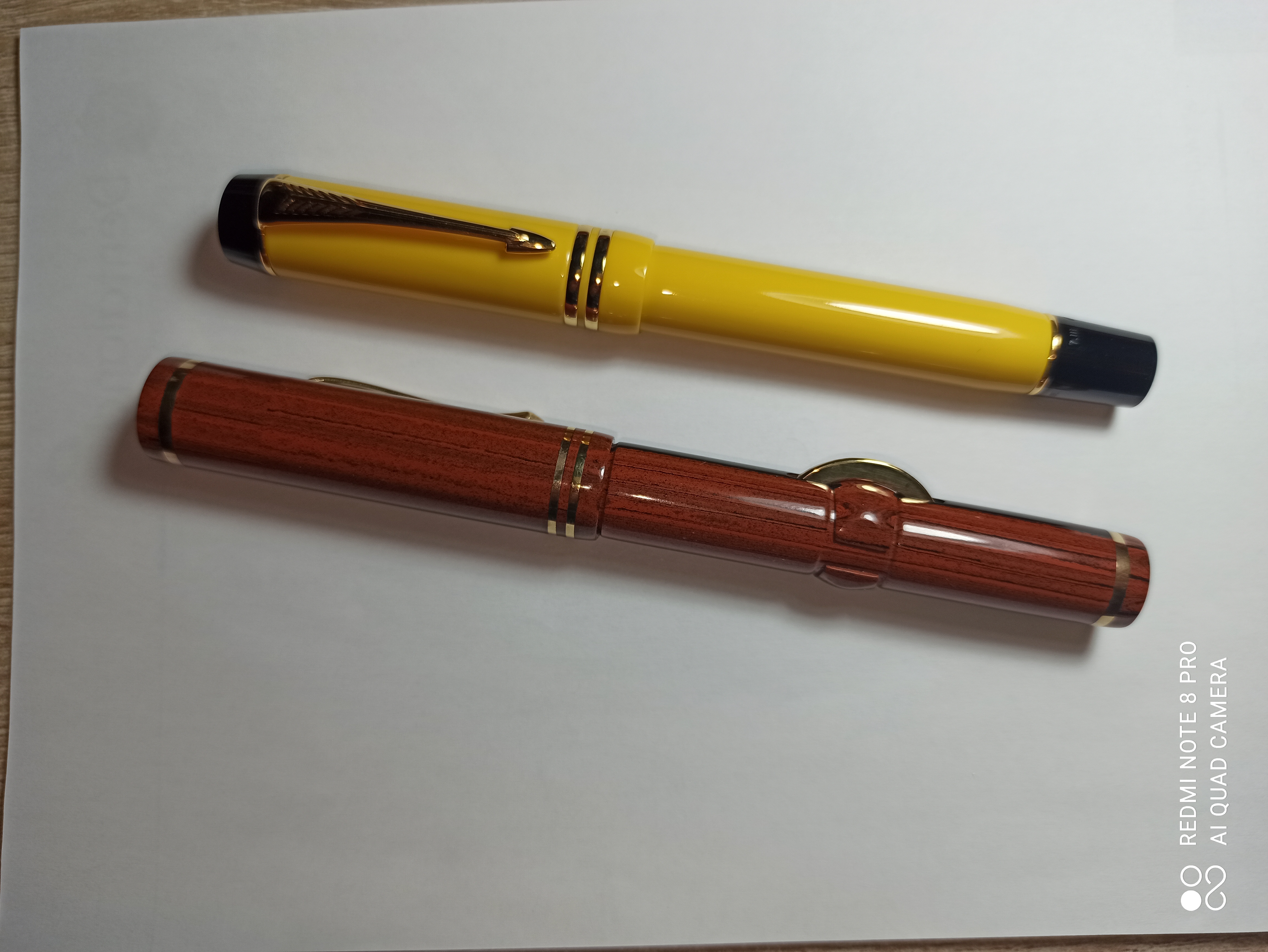 Le due sono materiali Conway stewart e le regalero a i miei nipoti (converter cartuccia) quella in ebanite e per mio figlio che sara crescent filler pero se qualcuno desidera posso fare quello che vuogle basta che abbia un po di pazienza perche il mio lavoro giornaliero mi occupa tanto tempo