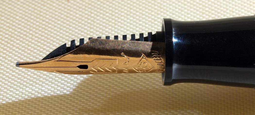 Bellissima penna, le Omas in celluloide sono penne davvero spettacolari. Ottimo pezzo, complimenti! Volevo chiedere ai più esperti un parere: ho una Omas Gentlemen (con la e) con corpo in celluloide nera e pennino Extralucens. La Gentlemen a quanto so dovrebbe essere una 557 con la vera grecata (con Milord e Dama rispettivamente 556 e 555). Ho avuto anche una 555/f con pennino anch'esso Extralucens e il disegno della penna mostrata da Lemure88 mi ricorda per le proporzioni più un pennino 555 che un pennino 557. Alcuni dettagli come la distanza tra il cartiglio e la scritta "Extralucens", il font della scritta "Omas" oppure la "lunghezza" della freccia sono i particolari che mi traggono in inganno. Perdonatemi se ho scritto castronerie. Vi metto qui di seguito una foto del pennino della mia Gentlemen, possibile che vi siano grafiche che differiscono per piccoli particolari anche per pennini della stessa misura? È solo una curiosità. Ancora i complimenti per la penna davvero splendida! La celluloide è davvero mozzafiato.