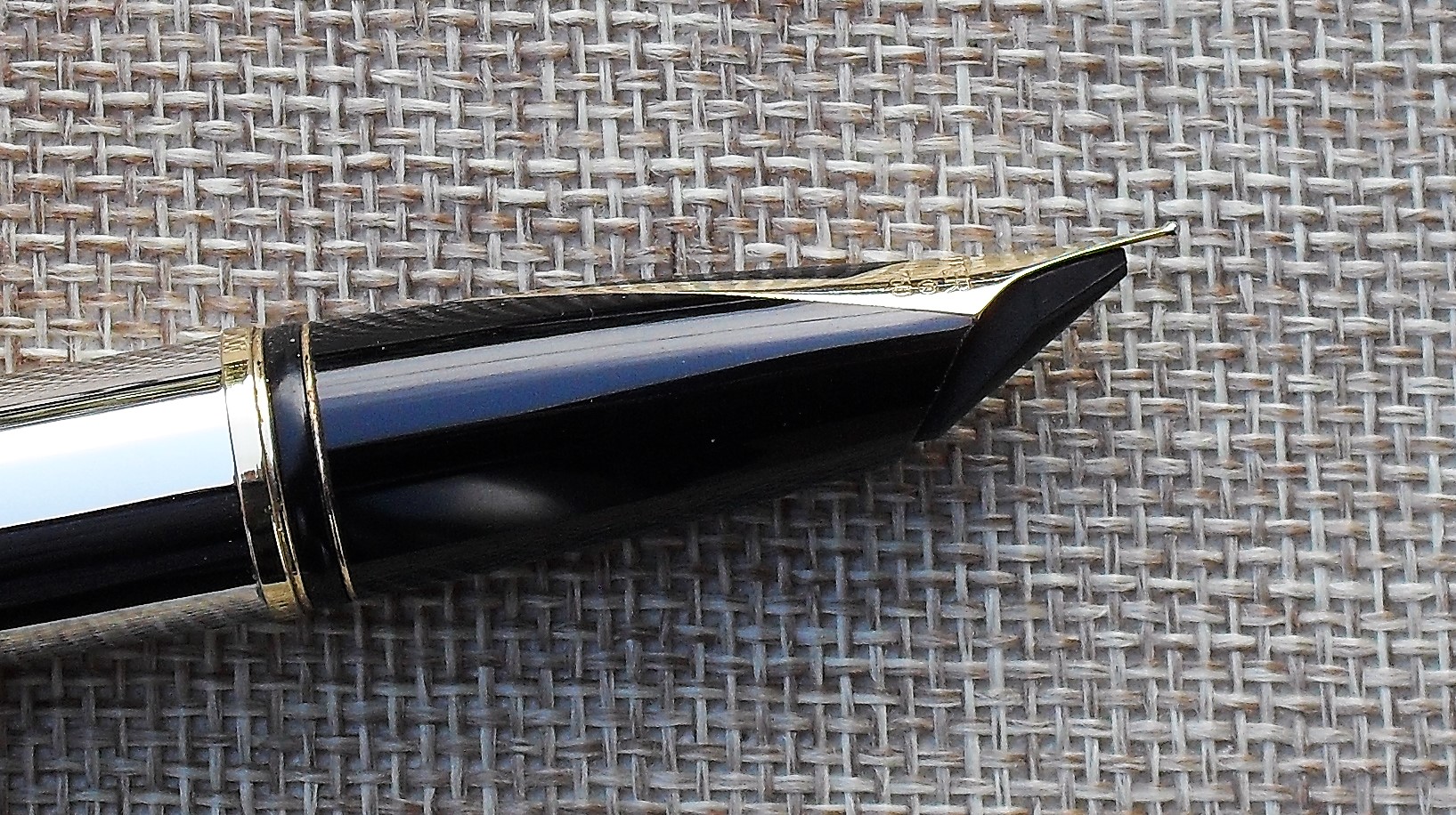 Il bellissimo pennino intarsiato, un capolavoro d'eleganza e di stile, s’estende per gran parte della sezione. Realizzato in oro a 18 carati, è morbido e molto scorrevole.