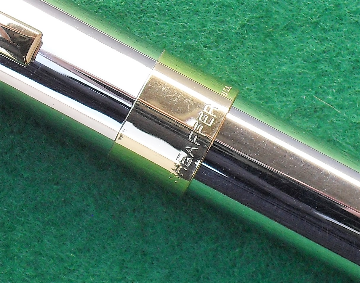 Si tratta di una stilografica che non passa inosservata e che pure non eccede, risultando abbastanza “leggera” alla vista. Il sistema di caricamento è il famoso “Touchdown” di Sheaffer, introdotto nel 1949 ed utilizzato su molti modelli, come le Touchdown, le TM, le Tip-Dip e le Imperial. La guaina di protezione del sacchetto che funge da serbatoio d’inchiostro è realizzata in metallo placcato d’oro a 23 carati.