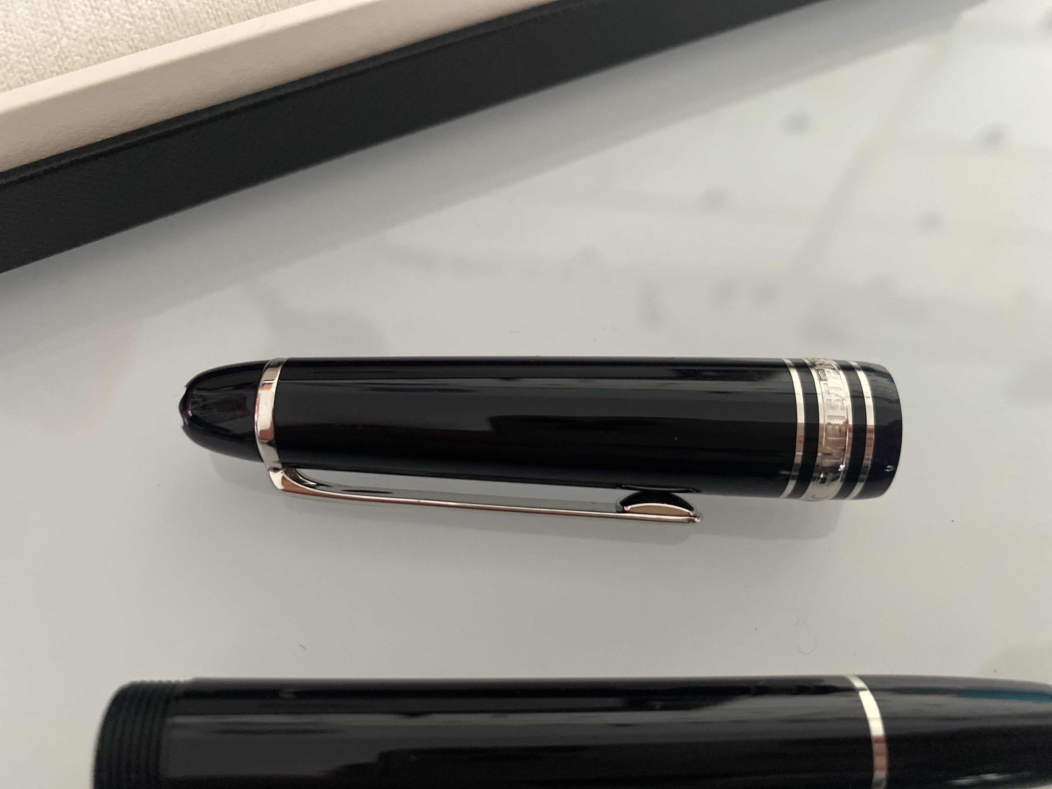 Sto negoziando per l'acquisto di una Montblanc ed al momento ho a disposizione solo di alcune foto, ma ne ho chieste altre più dettagliate. Il venditore dice di aver ereditato la penna da una collezione dello zio ed è venduta con cofanetto, garanzia e manuale d'istruzione, ma da quello che leggevo sul forum, si sono verficate false anche delle penne che avevano tutto questo. Quindi chiedo a voi esperti un parere.