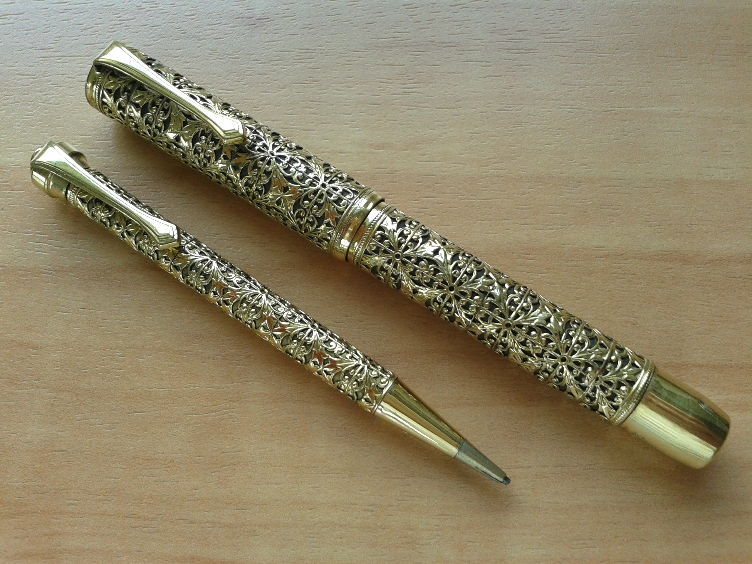 Si vedono in tal senso anche le due piccole rientrati, con pennino "brandizzato" e che come misura sono leggermente più piccole di una waterman 42 1/2V, quasi come a volersi differenziare, come per prendere le distanze, anche perché quelli stessi rivestimenti poi si trovano su delle Waterman di serie.