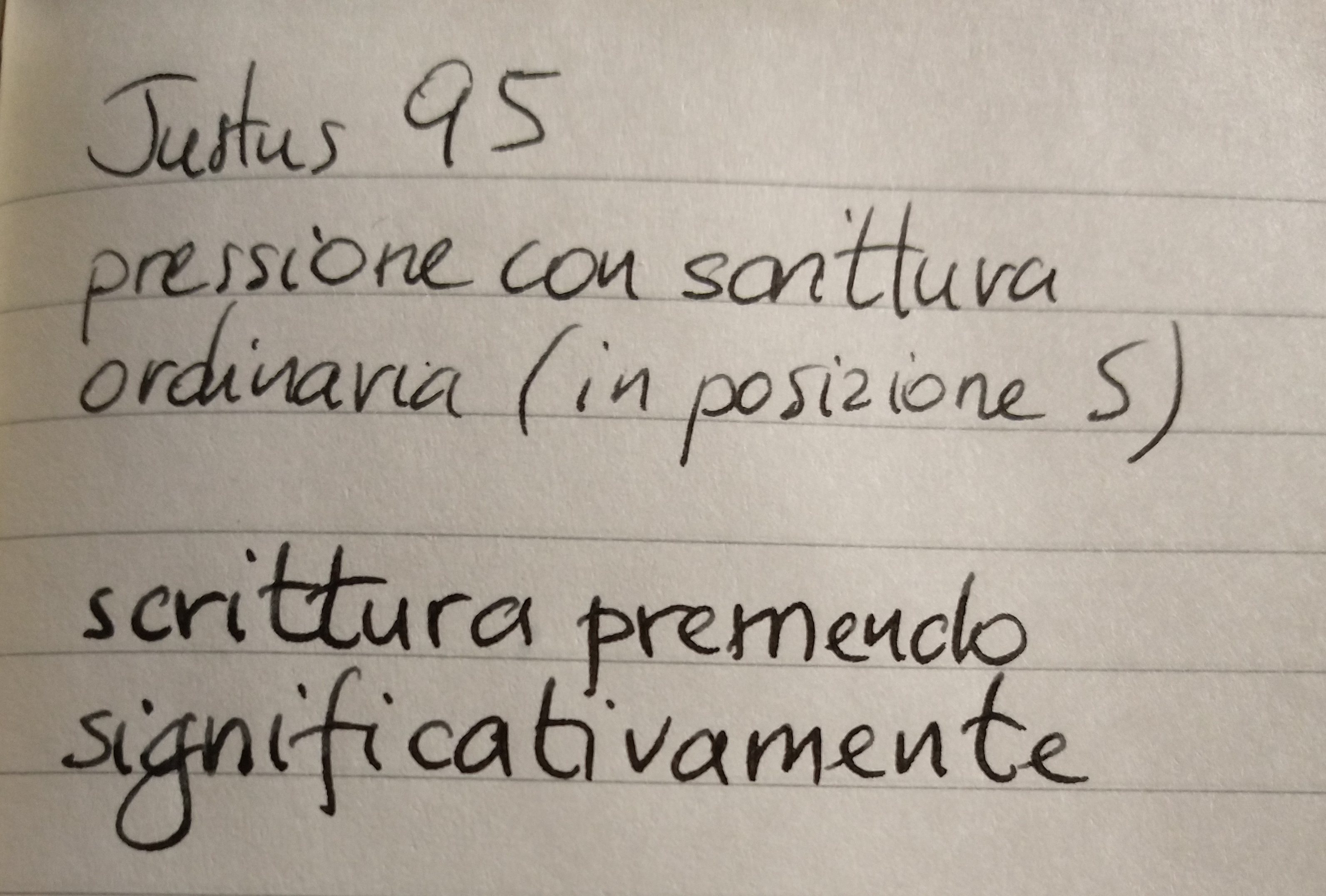 Aggiungo qualche esempio (premetto che ho la mano molto leggera, quando dico pressione ordinaria, è la mia pressione ordinaria, che non è molta). Prima una Justus 95, al massimo di morbidezza: