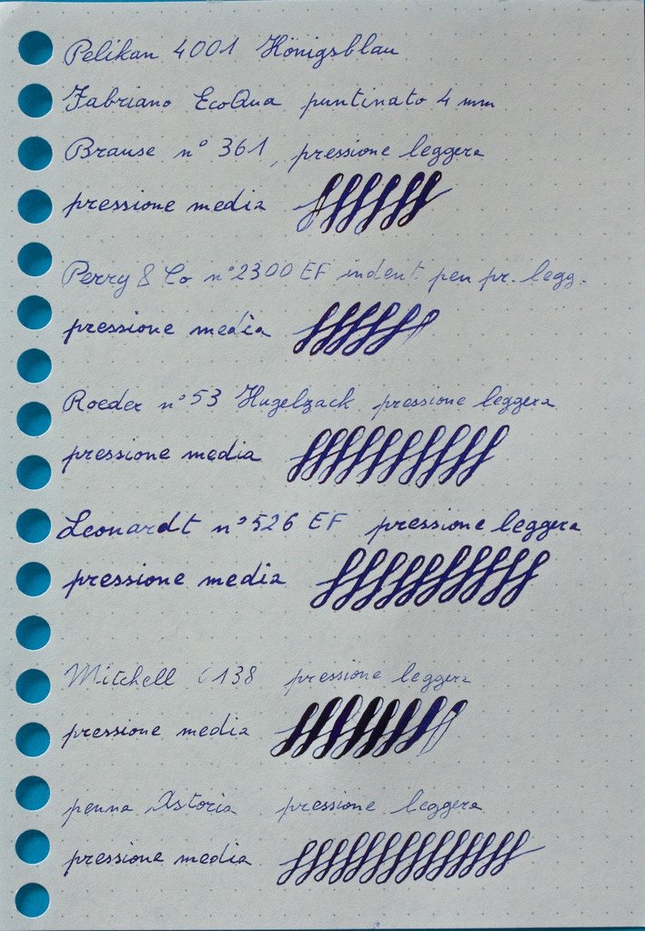 La Wahl è quella che scrive per me più piacevolemente nell'uso ordinario (l'anonima richiede un po' di attenzione nell'uso, è davvero un extraflex). Ma si, su quella carta quando ne depositi di più premendo, quell'inchiostro spiuma terribilmente, ma la penna c'entra ben poco. Se mi ricordo quando passerò ad un altro pubblicherò un'altra prova.