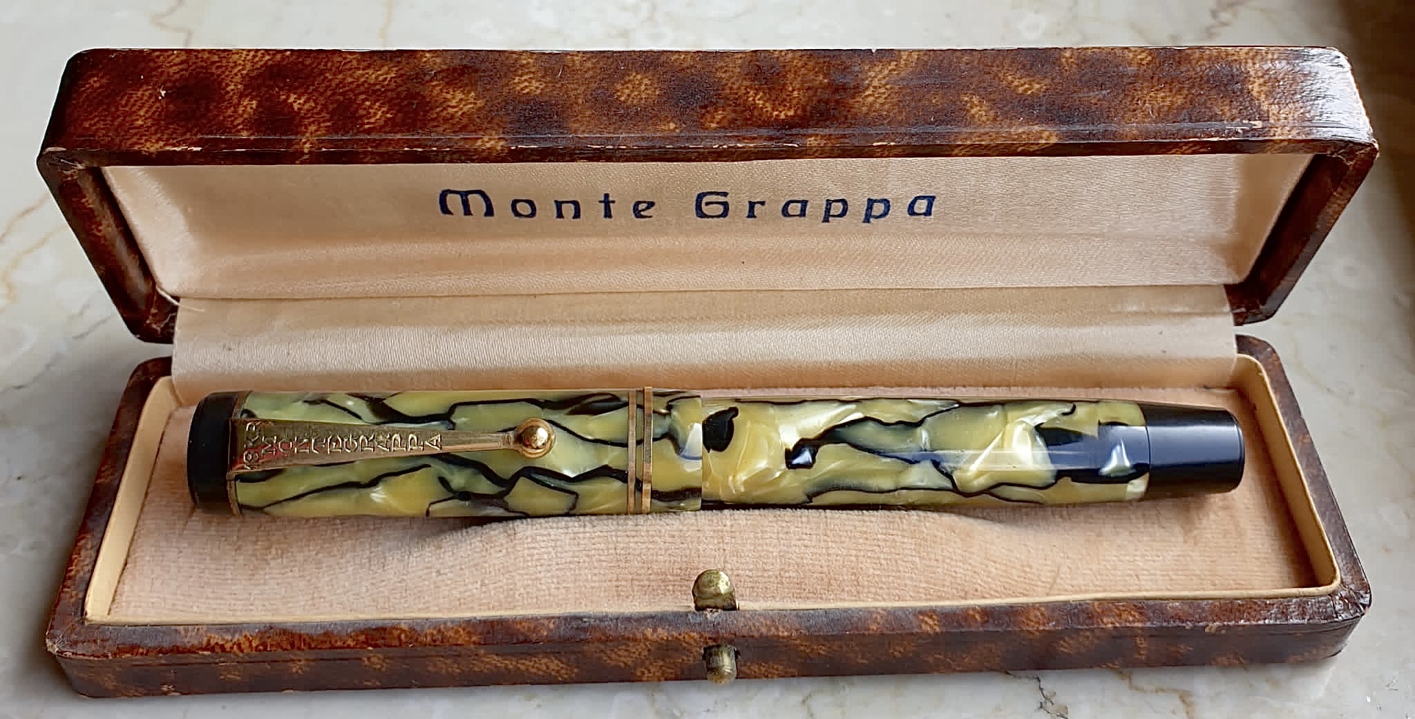 Bellissima anche questa, di penne con questa celluloide e di quell'età in condizioni così buone non ne ricordo nessuna...