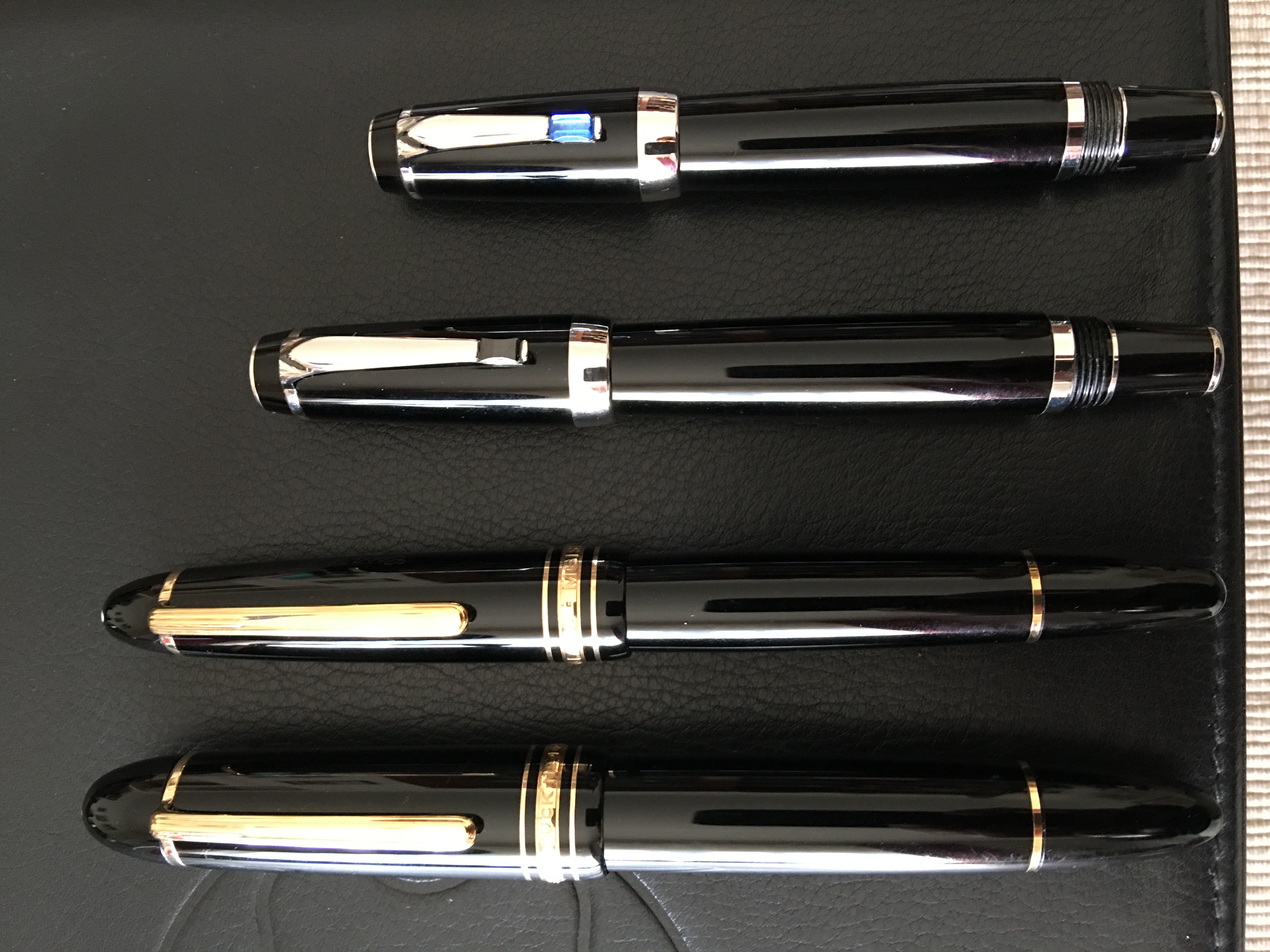 Esattamente quello che avevo bisogno di vedere. Dunque, da aperta, la Bohéme midsize é appena più piccola di una Meisterstück 146, e quando é calzata continua ad essere appena più piccola di una 146 con il cappuccio calzato.