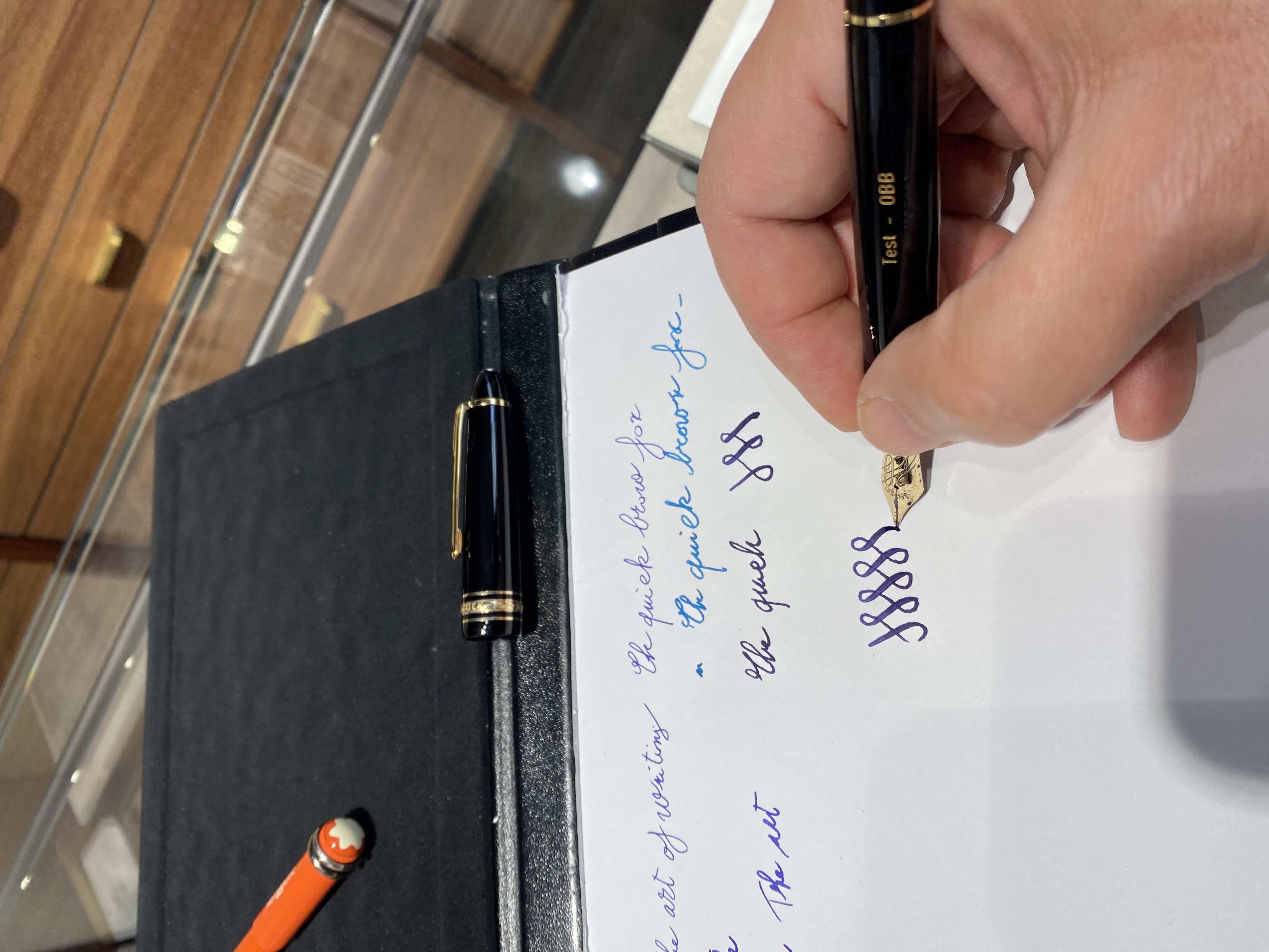Tra l’altro mi hanno fatto provare un pennino EF e mi sono dovuto ricredere .. era veramente sottile! Pensavo che la Montblanc producesse pennini sempre un po’ abbondanti ma questo EF e’ proprio un extra fine pieno