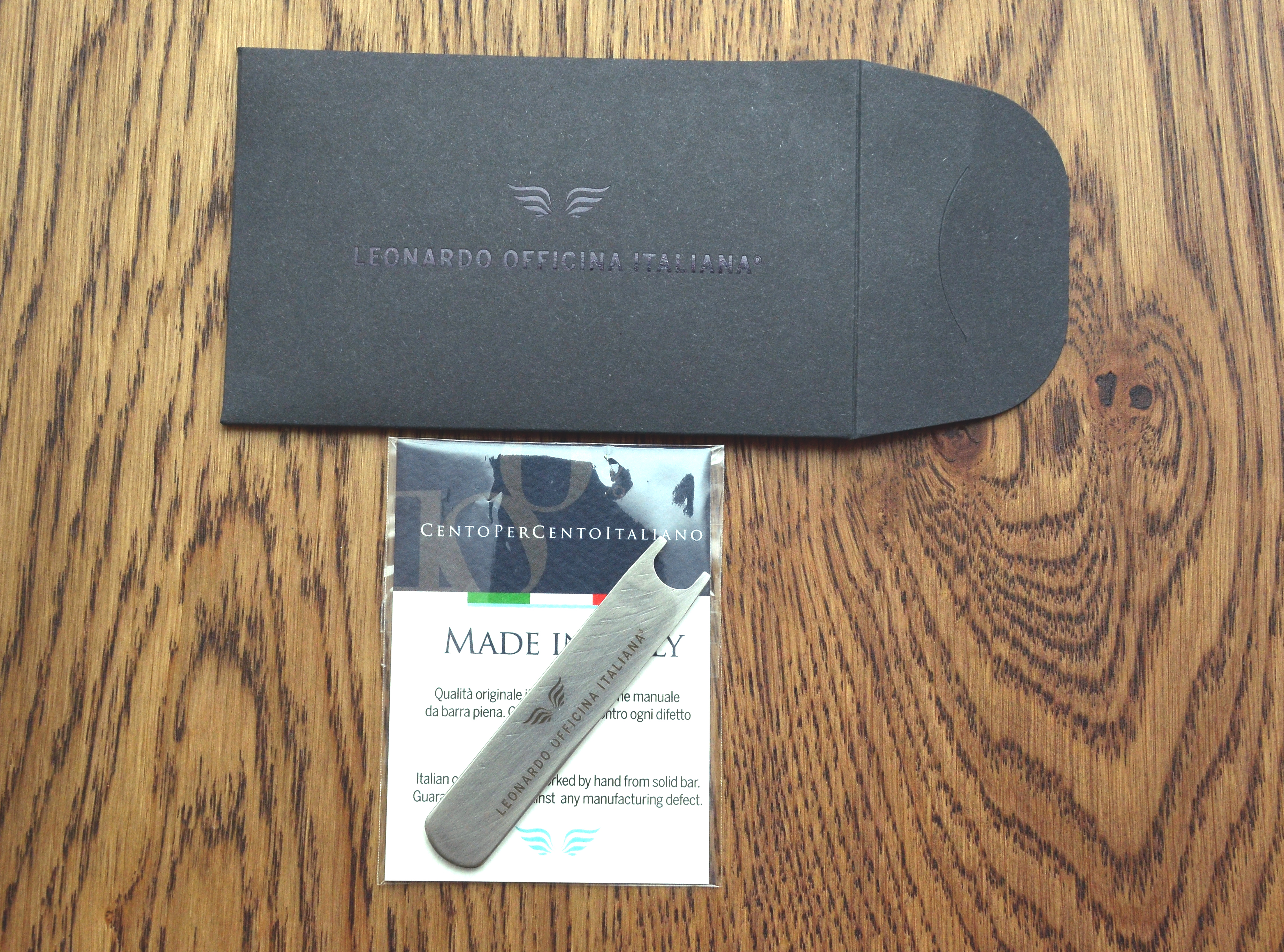 Una cosa che non mi piace (e che non capisco) è la chiavetta per smontare la penna venduta separatamente (30 caffe'...). Alla fine è un pezzetto di metallo, che avrebbe potuto/dovuto essere incluso, dato il tipo di penna. Per compensare i costi, bastava mettere qualche euro in più sul prezzo. Oppure offrire una doppia alternativa, "con" e "senza" chiavetta di smontaggio, in modo da offrire un kit completo a chi "comincia" con Leonardo, e non offrire duplicati a chi invece ne acquista due-tre, di vario pennino o rifinitura estetica.