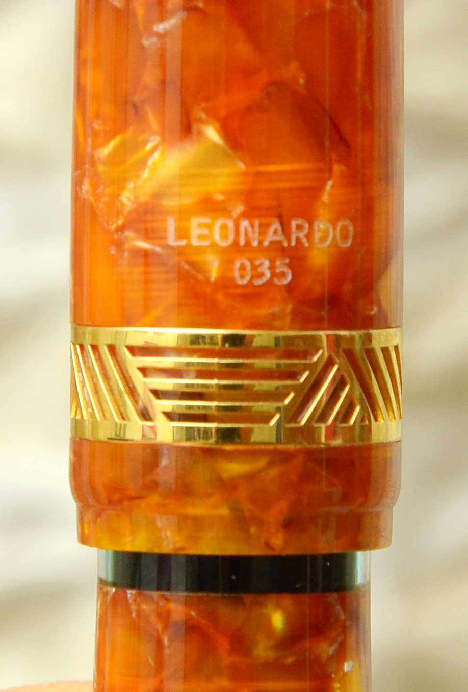 Dietro al cappuccio sopra la vera c'è l'incisione del nome "Leonardo" e subito al di sotto il numero della penna.