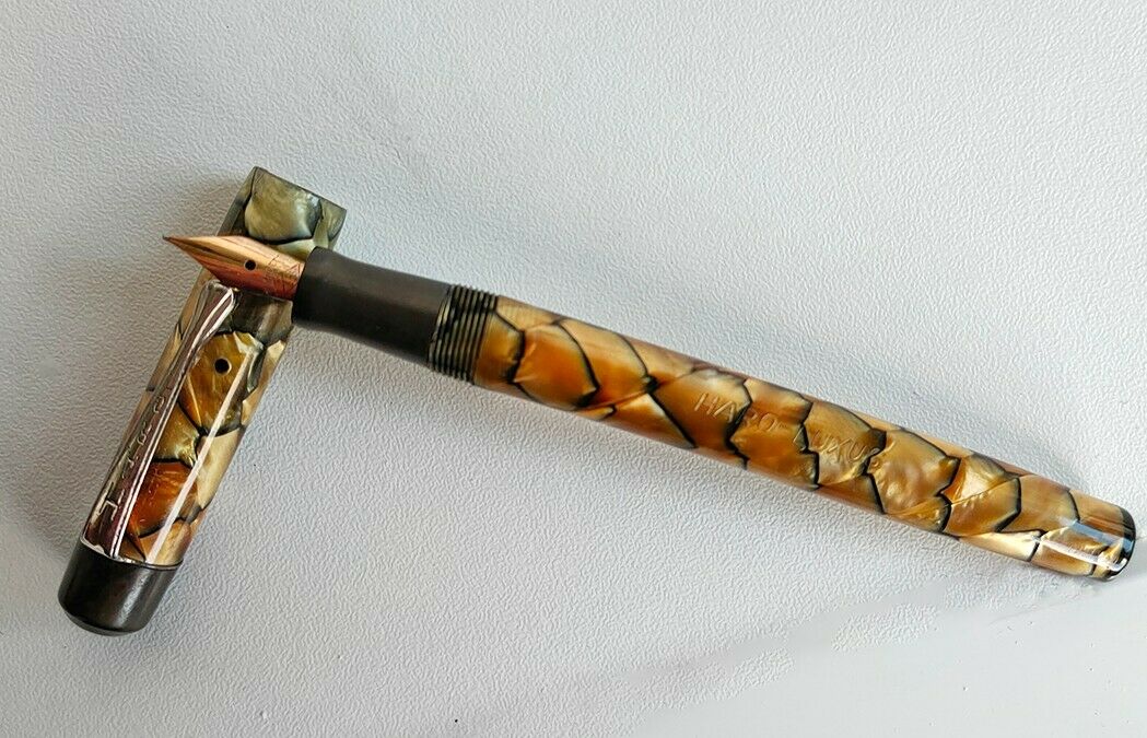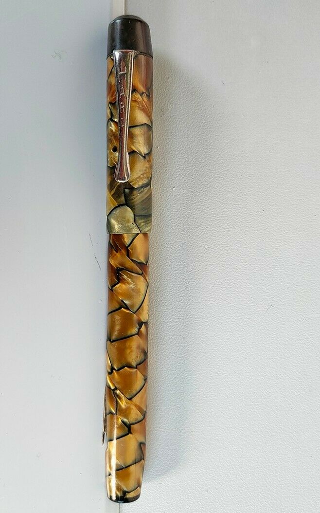 Si tratta di una vecchia Haro (non saprei di che epoca, anni '30?), vecchia marca minore tedesca, in questo caso in versione "Luxus", con un pennino in oro marcato "Quadretti" (immagino sostituito ad un certo punto).