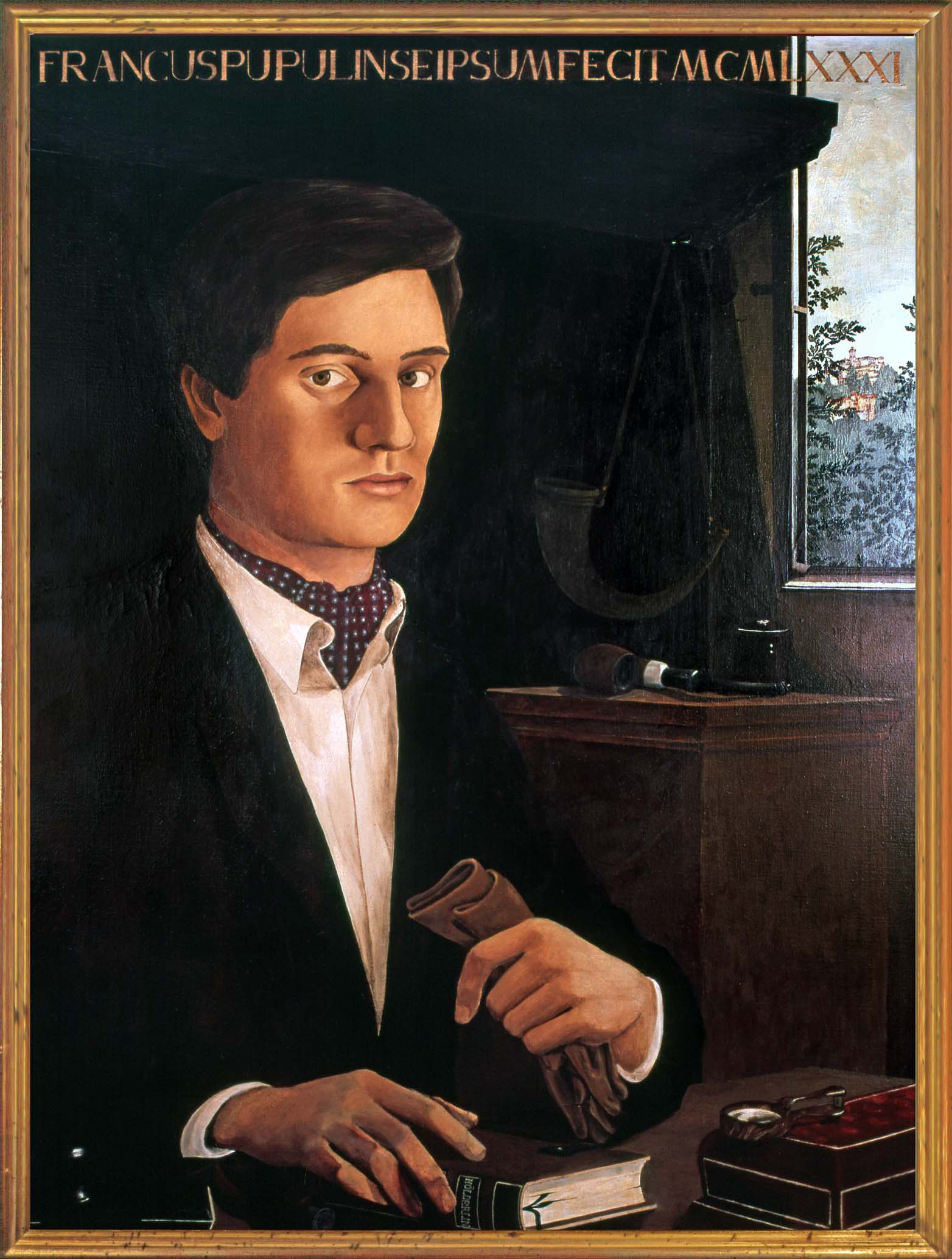 Vi copio qui l'immagine di un autoritratto che dipinsi nel 1981, quando avevo 21 anni. La mano destra poggia su un libro.