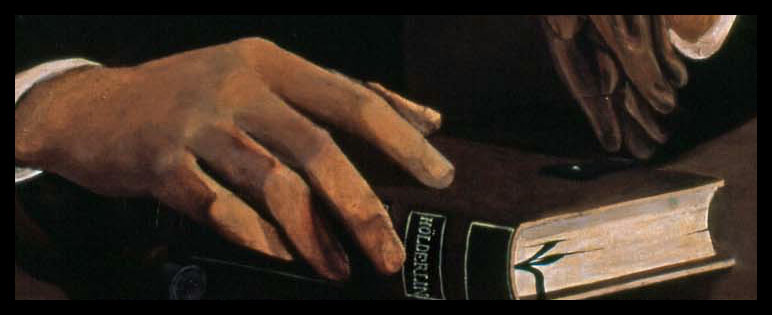 Nel dettaglio é chiaramente visibile che si trattava di un volume delle liriche di Hölderlin.