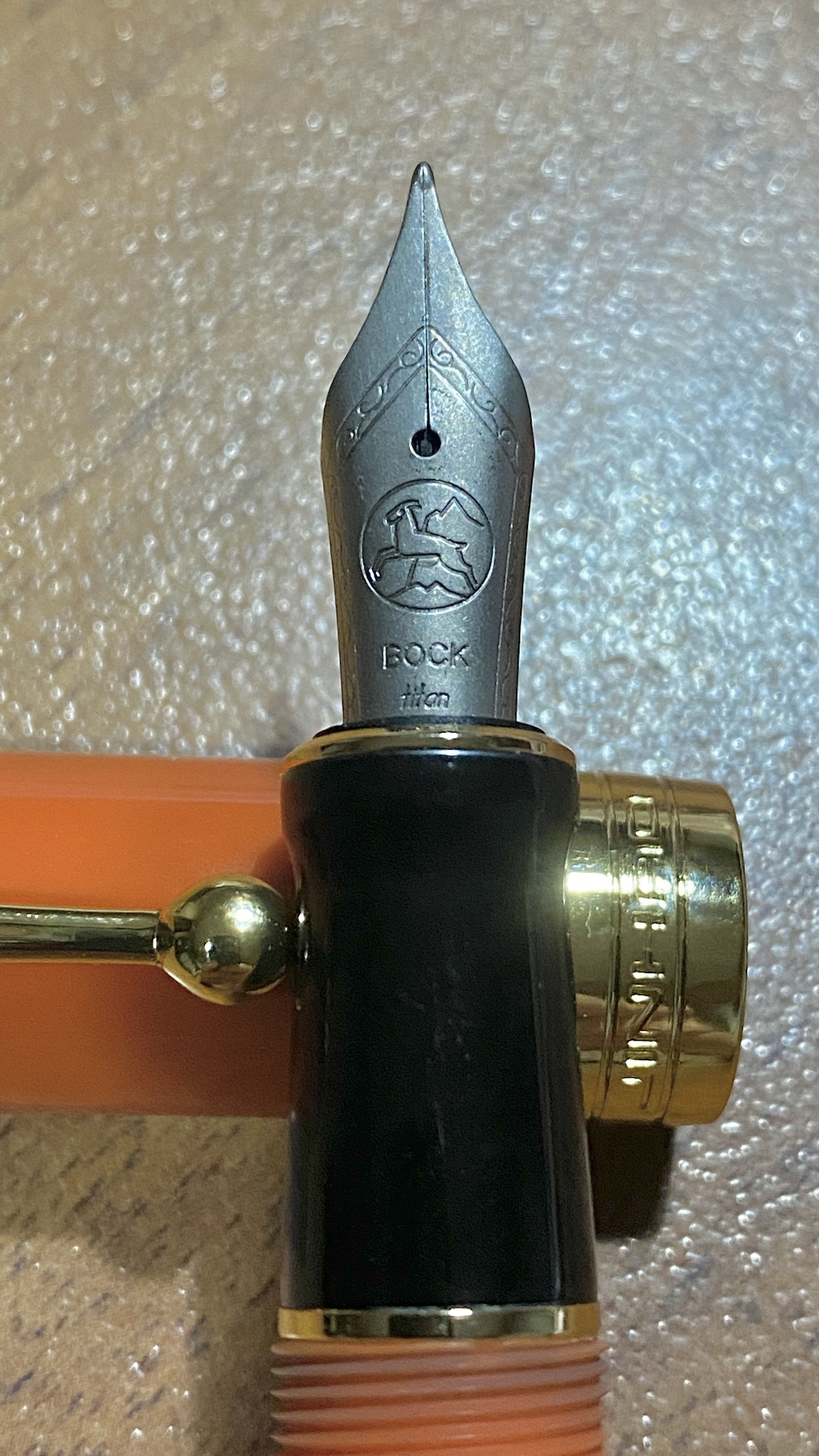 Ciao, vi aggiorno sul mio piccolo esperimento. Possiedo una Namisu con doppio pennino Bock. Un bold e uno fine in titanio. Ho potuto mettere entrambi i pennini nelle Jinhao ma non gli alimentatori. Quindi ho messo i pennini Bock sugli alimentatori Jinhao e si sono sposati alla perfezione, almeno così sembra a prima vista. Tra un po’ farò una prova di scrittura. Intanto un paio di foto