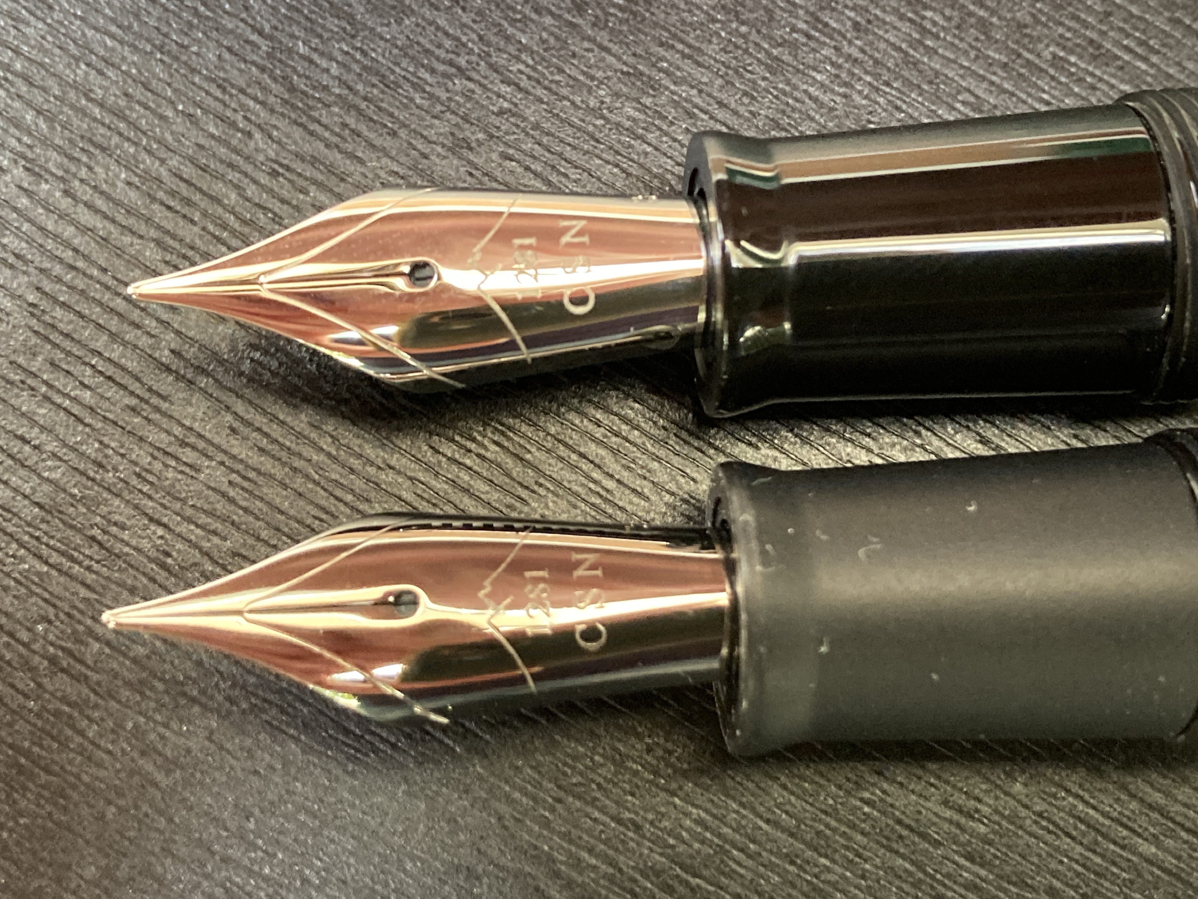 Ad aggravare la situazione, già di per se critica (per il budget) è stata l'opportunità di ordinarle con il pennino in oro 14k. Ahimè è stato come un favo di miele per un orso. :roll: