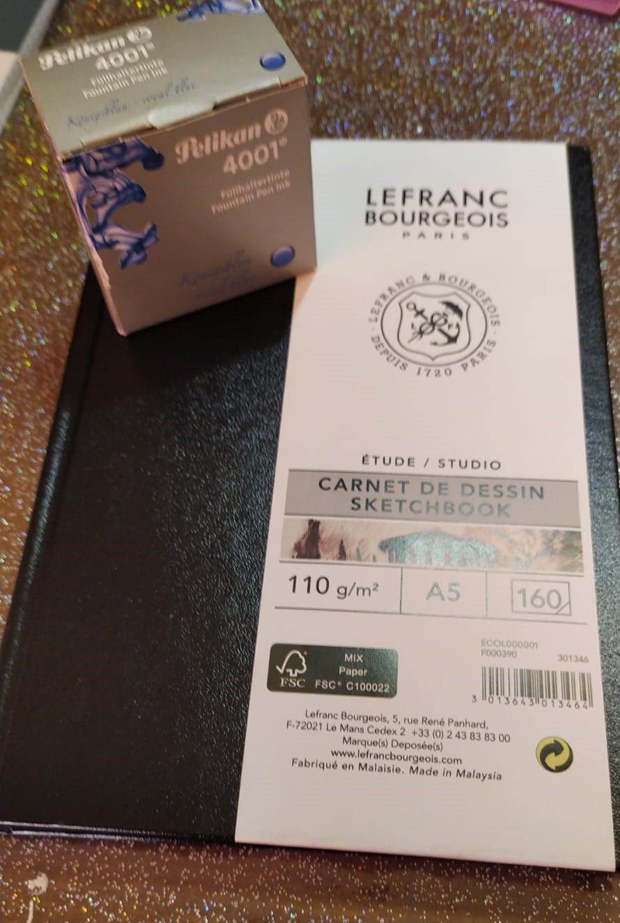 Oggi un amico mi ha regalato uno sketchbook della Lefranc Bourgeois, formato A5, pagine bianche leggermente ruvide con grammatura 110g/m2.
