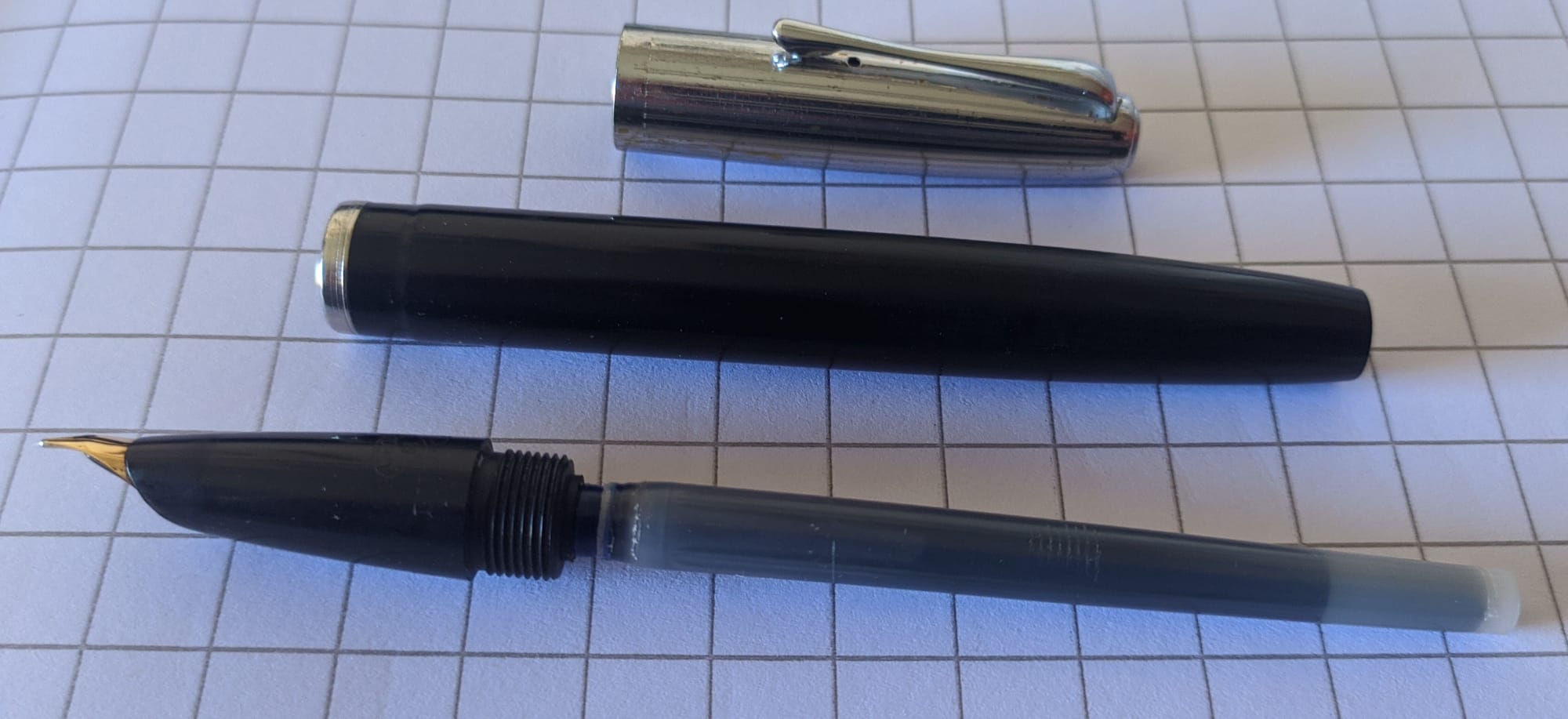 Grazie della rece, questa è una bella penna, che certamente lancia le cartucce in Europa e ispira tutta una serie di produttori. Le cartucce originali purtroppo sono praticamente introvabili perchè avevano una forma proprietaria.
