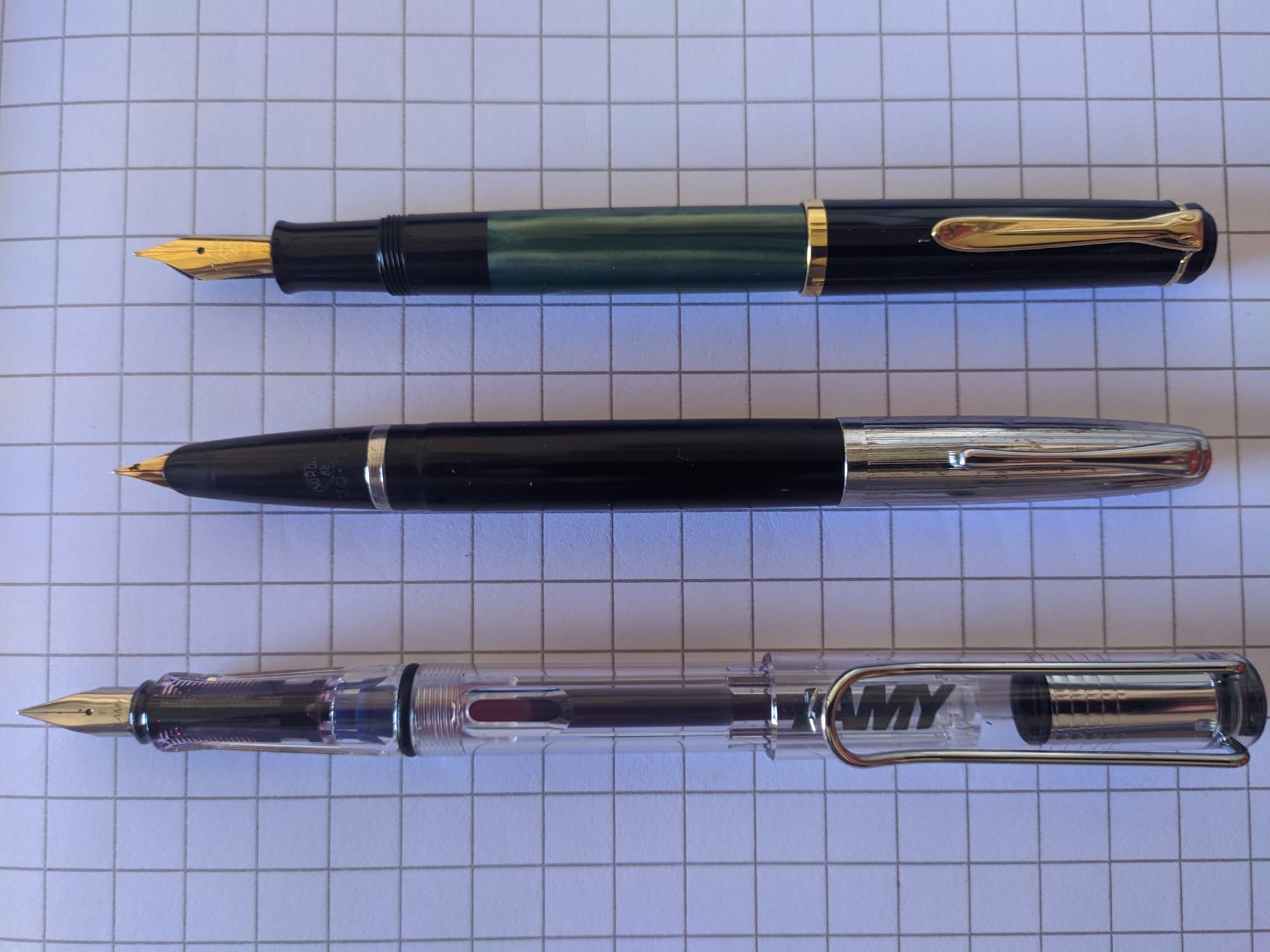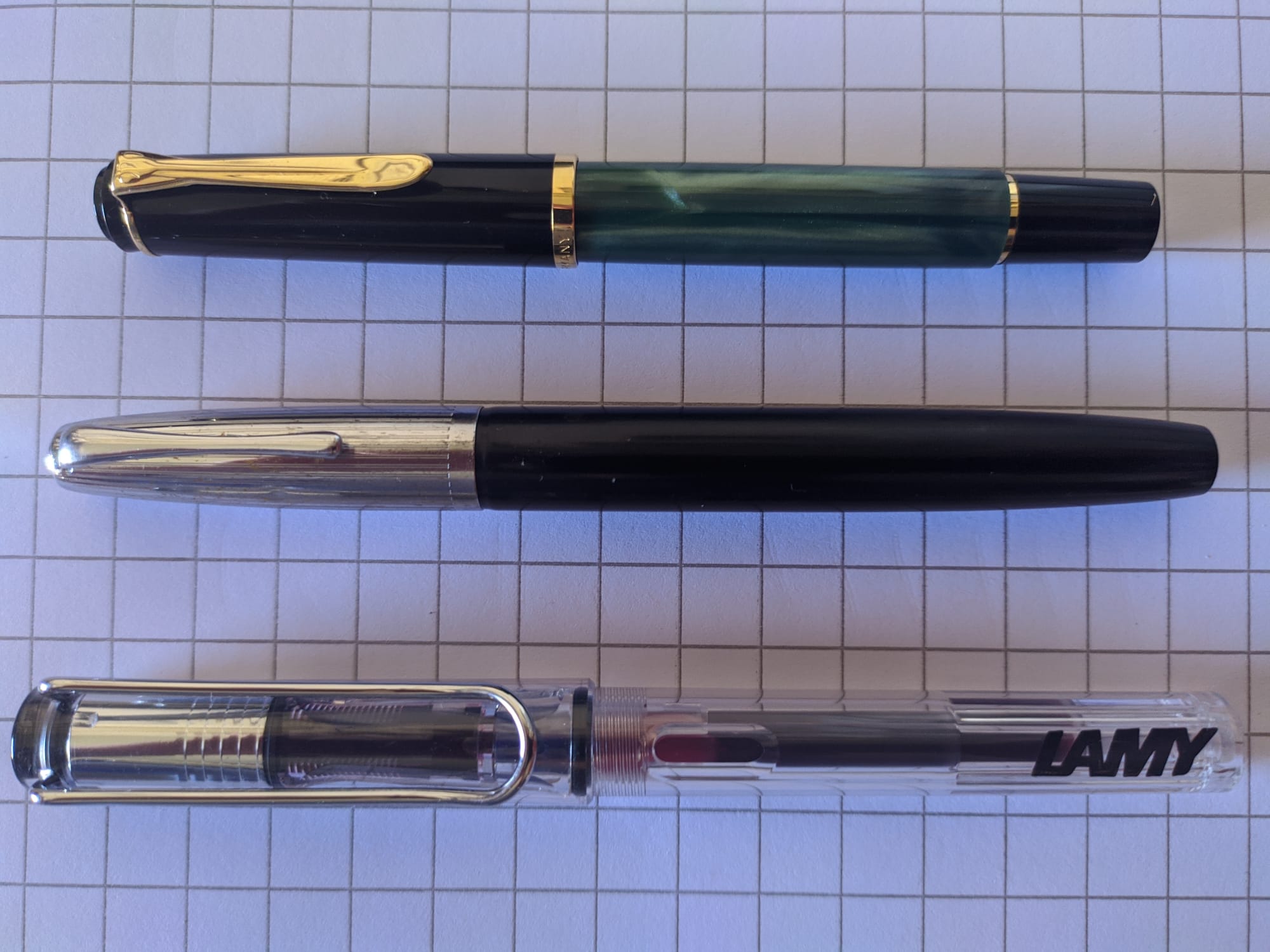 In foto un confronto con una Pelikan M200 ed una Lamy Safari Vista.
