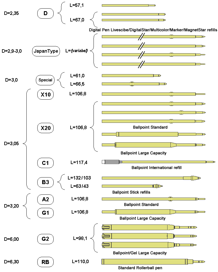Molto interessante l'immagine che hai allegato! Non viene proprio da pensare aprendo una penna pubblicitaria da quattro soldi e tirando fuori il refill con le due alette "pinzate" che si tratti di un prodotto con un suo standard, e che di questi standard ne esistano vari.