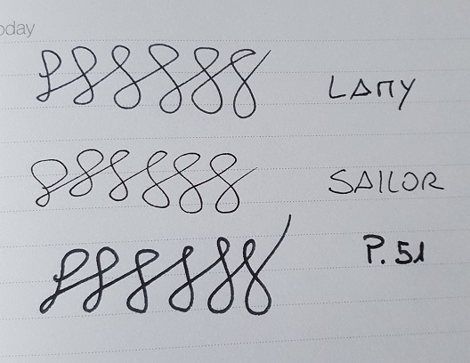 Scrivendo sullo stesso tipo di carta, comune carta di block notes Pigna, la Lamy ha il tratto della dimensione che vorrei ma sento troppo "ritorno" (non so come posso spiegarlo tecnicamente, non sono un esperto e non penso che "grattare" renda l'idea... spero però abbiate capito cosa intendo), la Parker invece ha un "ritorno" minimo, quasi nullo, è più vellutata, cosa che mi piace molto di più, ma il tratto è un po' grande rispetto a quello che vorrei.