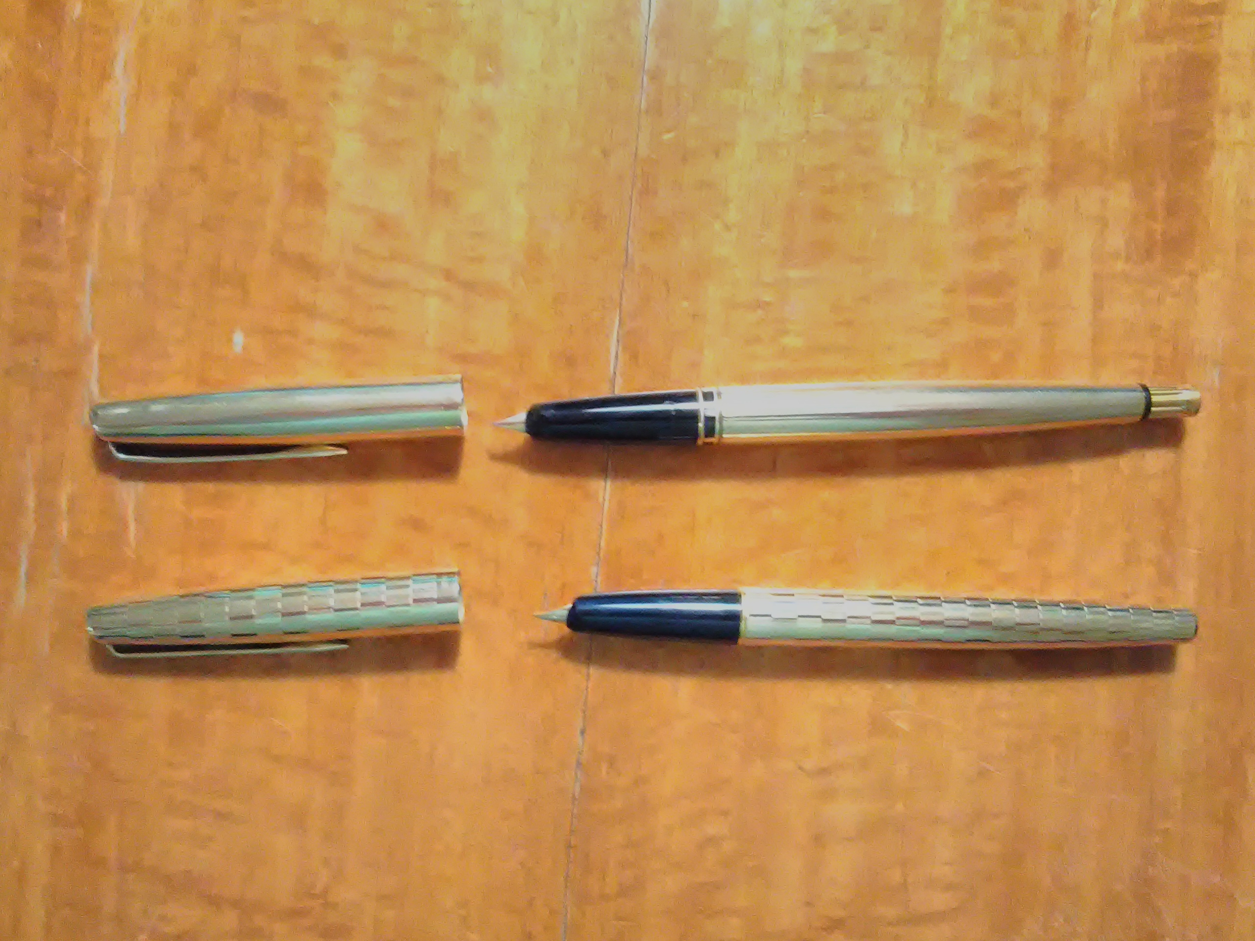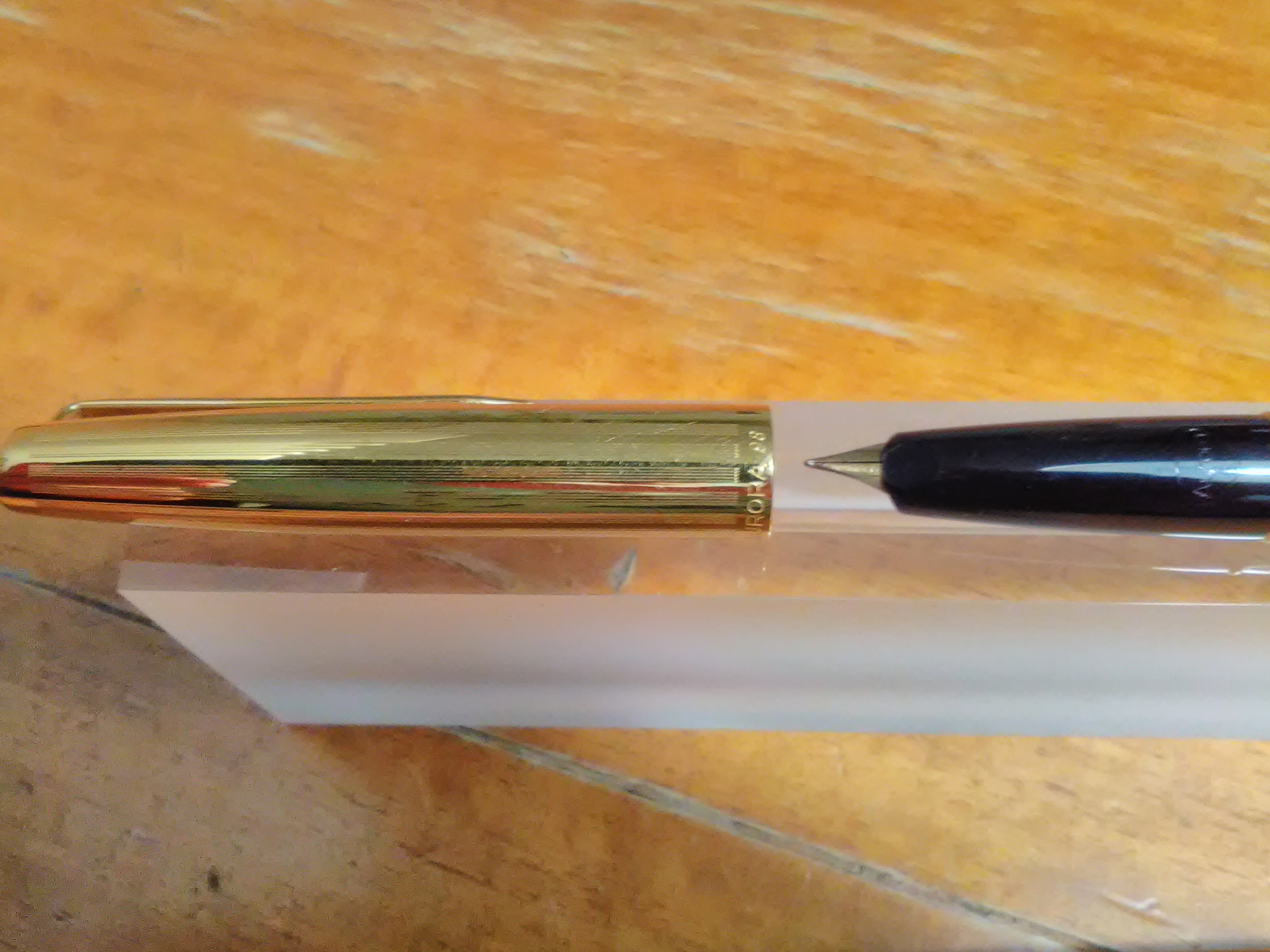Una seconda ipotesi è che si tratti di una Aurora 888P, però guardano nel Wiki (www.fountainpen.it/Aurora_888) vedo che, oltre ad avere la serie di stampigliature sulla sezione che nella mia manca, la penna era caratterizzata dal fondello a sigaro chiuso con un tappino di metallo, mentre nel mio caso il fondello è tronco e chiuso con un bottoncino metallico. Resta poi sempre il mistero della cartuccia (le "vecchie" Aurora non ci vanno, solo quelle recenti).